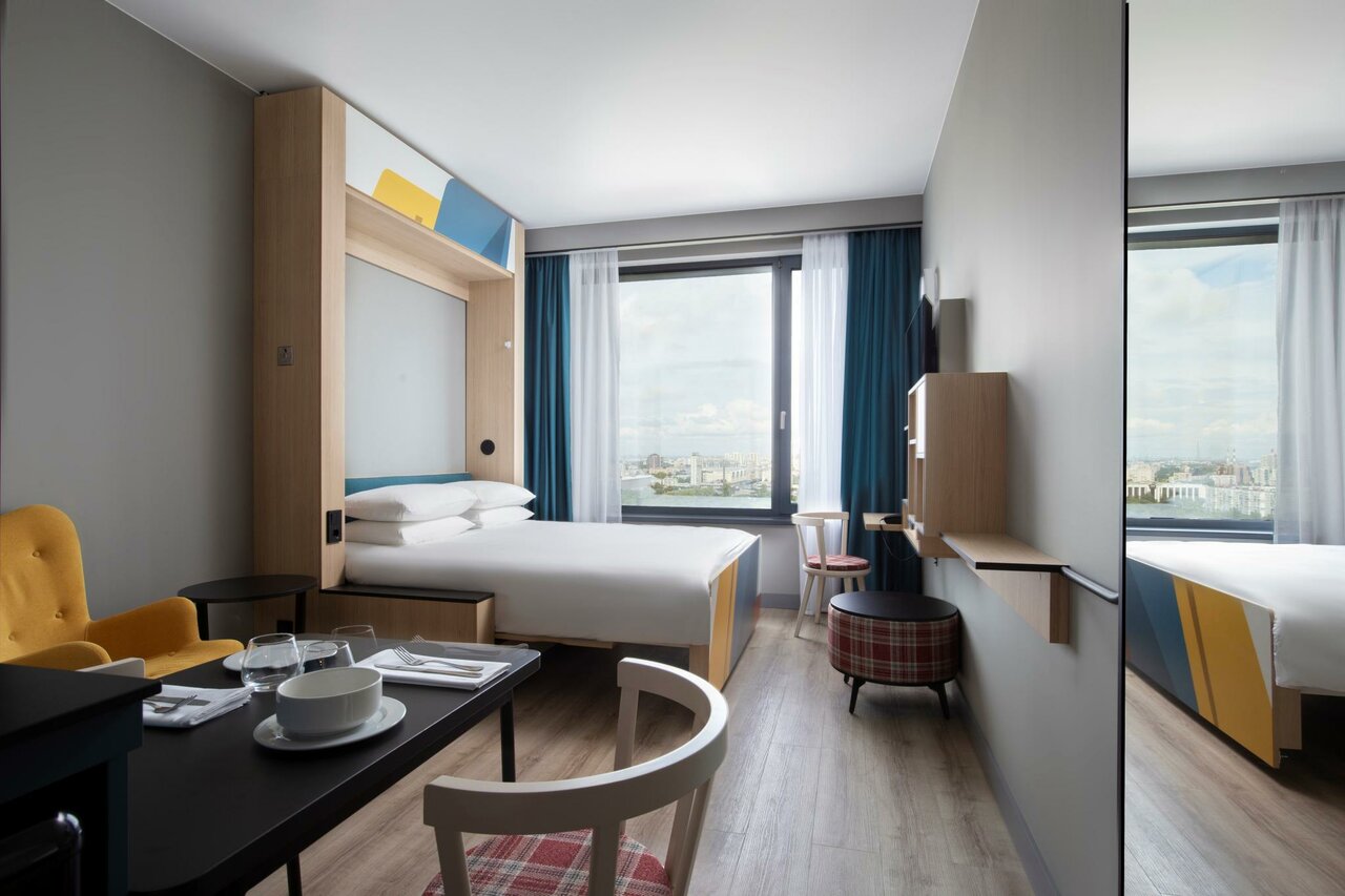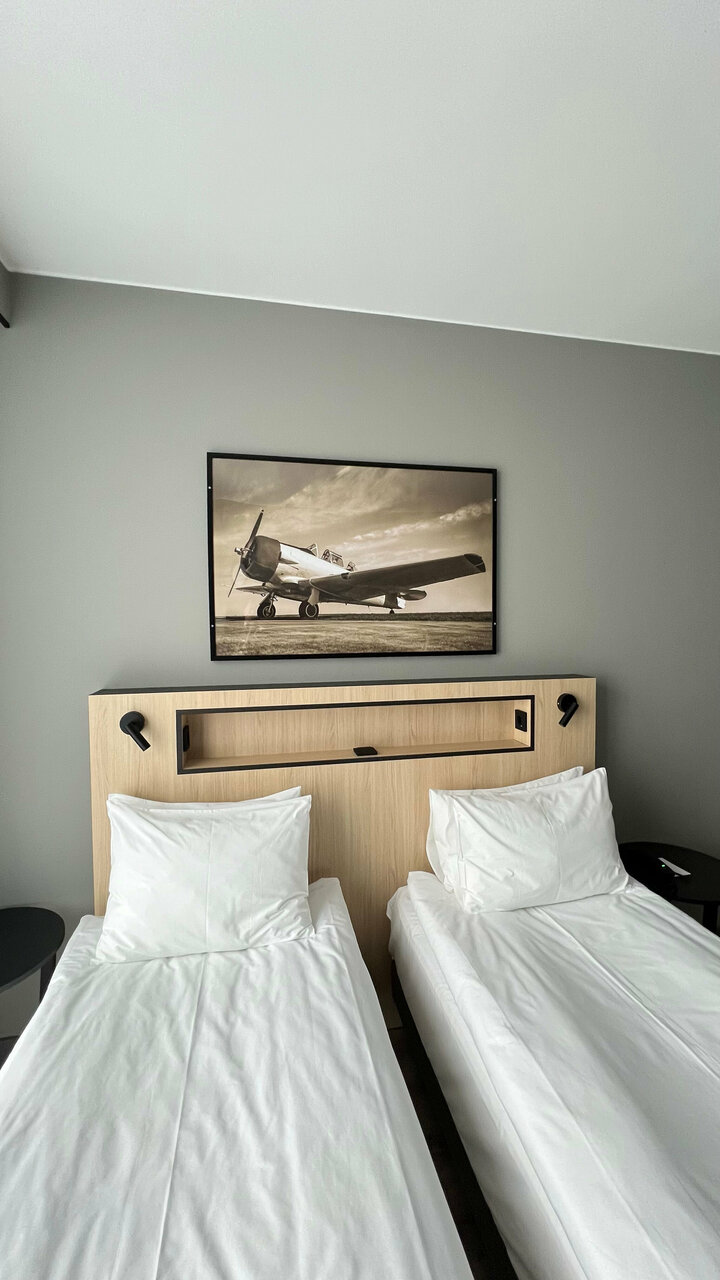 Не вау! Разочарована номером, в душе протекала вода, кровать маленькая и деревянные бортики это ужас, все ноги в синяках В наш приезд очень умный гость покурил в номере и в 4:50 нас разбудило оповещение о пожаре! (Но не могу назвать минусом, тк при реальном пожаре такая система хороша).Как следствие-не отдохнули нормально. Вид из окна классный, на парк, но окна очень грязные Из плюсов — в лобби классно посидеть выпить коктейль (делают очень неплохо), персонал вежливый, кофе тоже хороший(можно с собой). От метро далековато, но рядом есть парк и при желании можно и прогуляться. Конечно же, главный плюс- это аэропорт в 10-15 минутах езды)