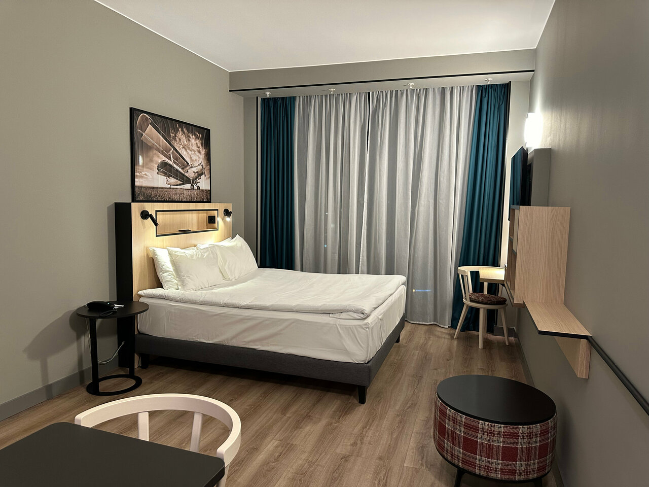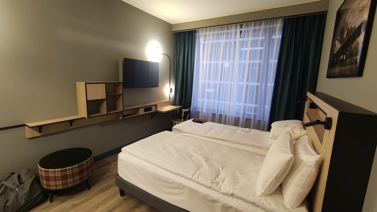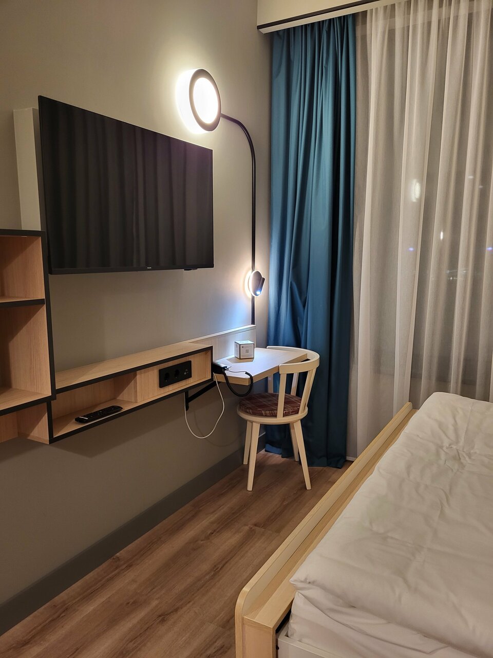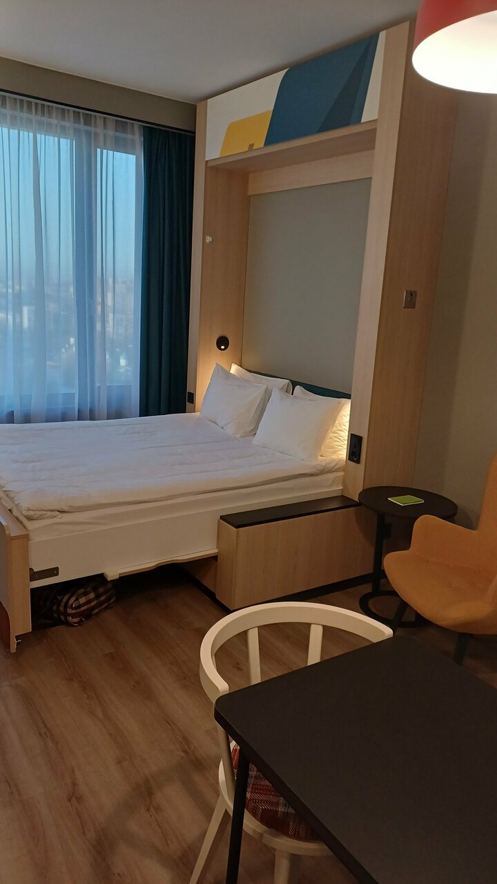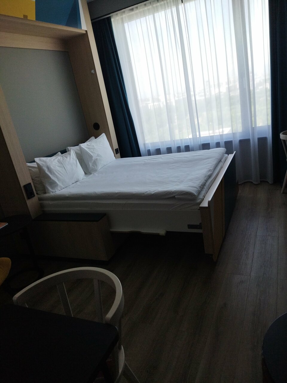 Новый, современный отель. Дизайн номеров очень продуман, отделка стен сочетается с мебелью. Белоснежное белье, чистота. Шум автострады не доноситься. В шаговой доступности магазины, кафе , столовая