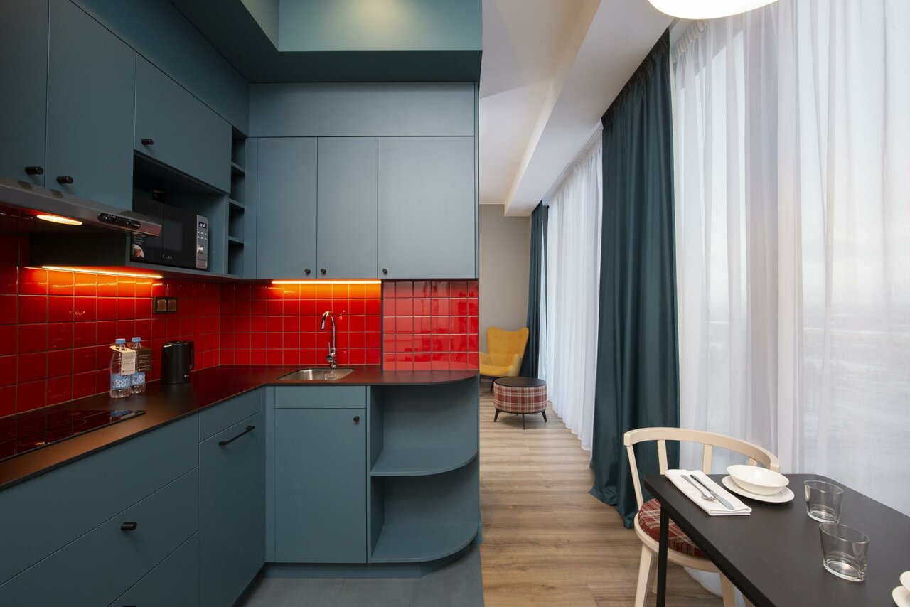 - Наличие мини-кухни и посуды в номере.