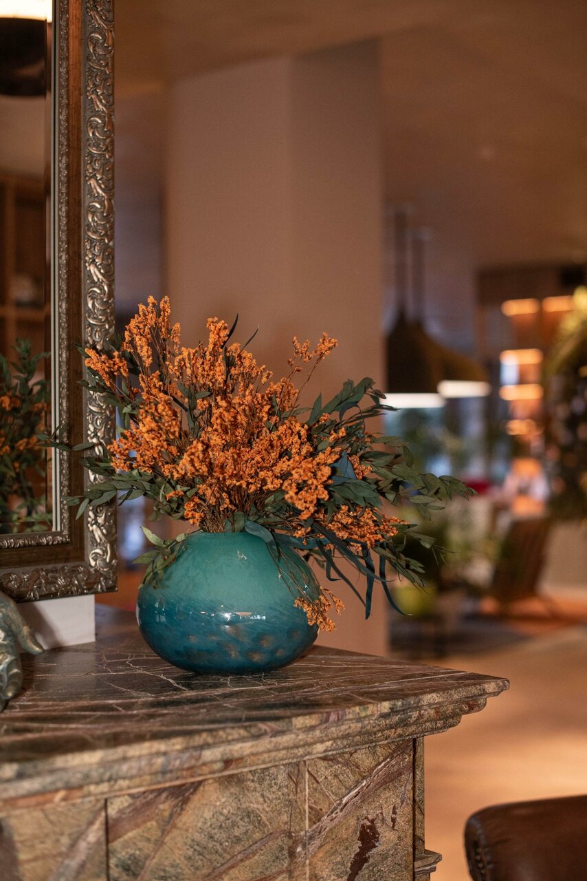 - Уютный и стильный интерьер (лобби-бар, картины, цветы).