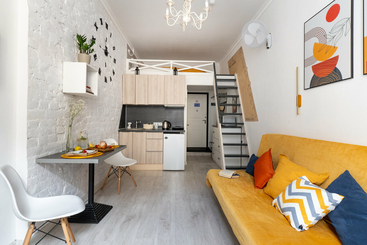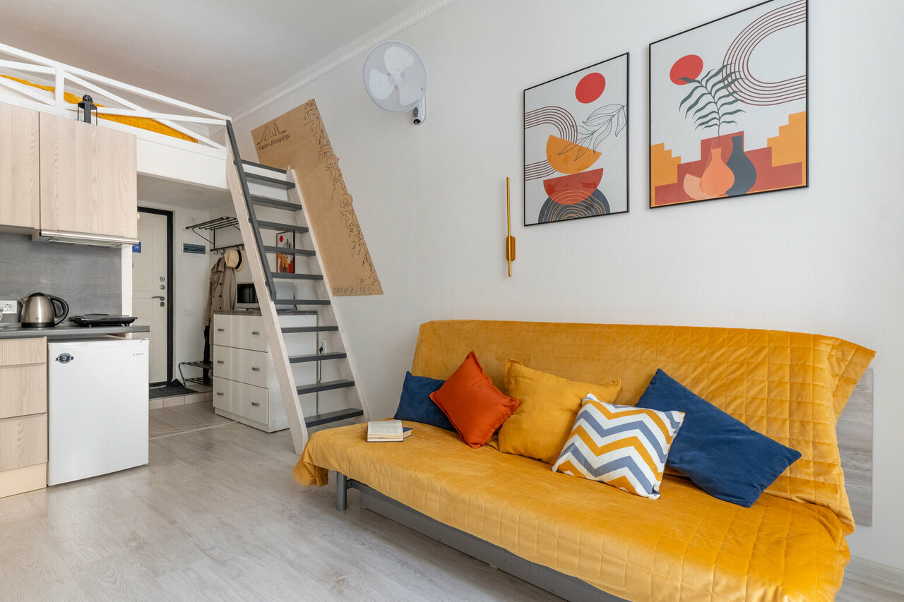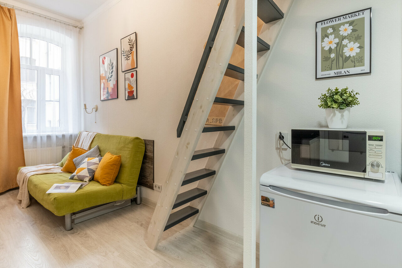 Отдыхали с детьми в Питере и нашли отличные аппартаменты. Для четырех человек очень удобный вариант, так как верхий ярус оборудован большим спальным местом. Очень важно, что везде идеальная чистота. Все продумано. Есть стиральная машинка, кулер и даже можно воспользоваться зонтами. В квартире есть посуда, в ванне полотенца для все и принадлежности. Очень комфортно было проживать. А главное место! За углом Невский, очень удобно. В то же время, окна на тихий двор и отдохнуть было комфортно. Рекомендую, отличный вариант.