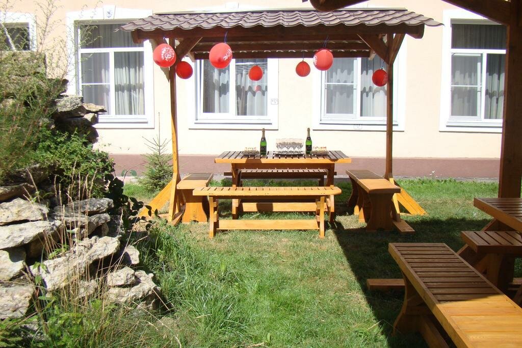 - Детская площадка и беседки на территории.