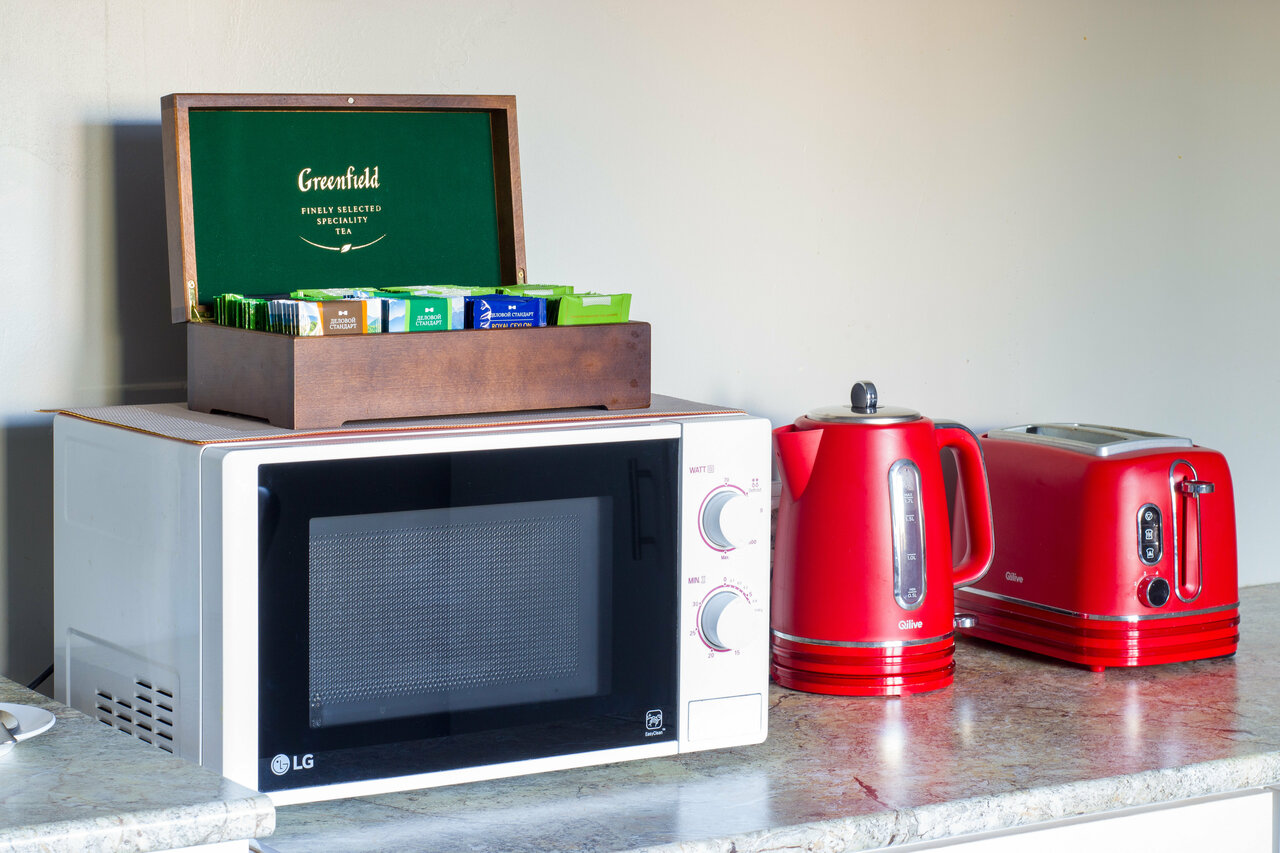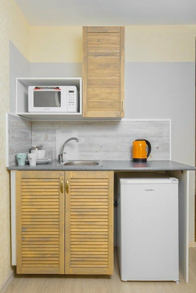 - Наличие кухни с необходимой техникой (микроволновка, тостер, холодильник, кофеварка, посудомойка).