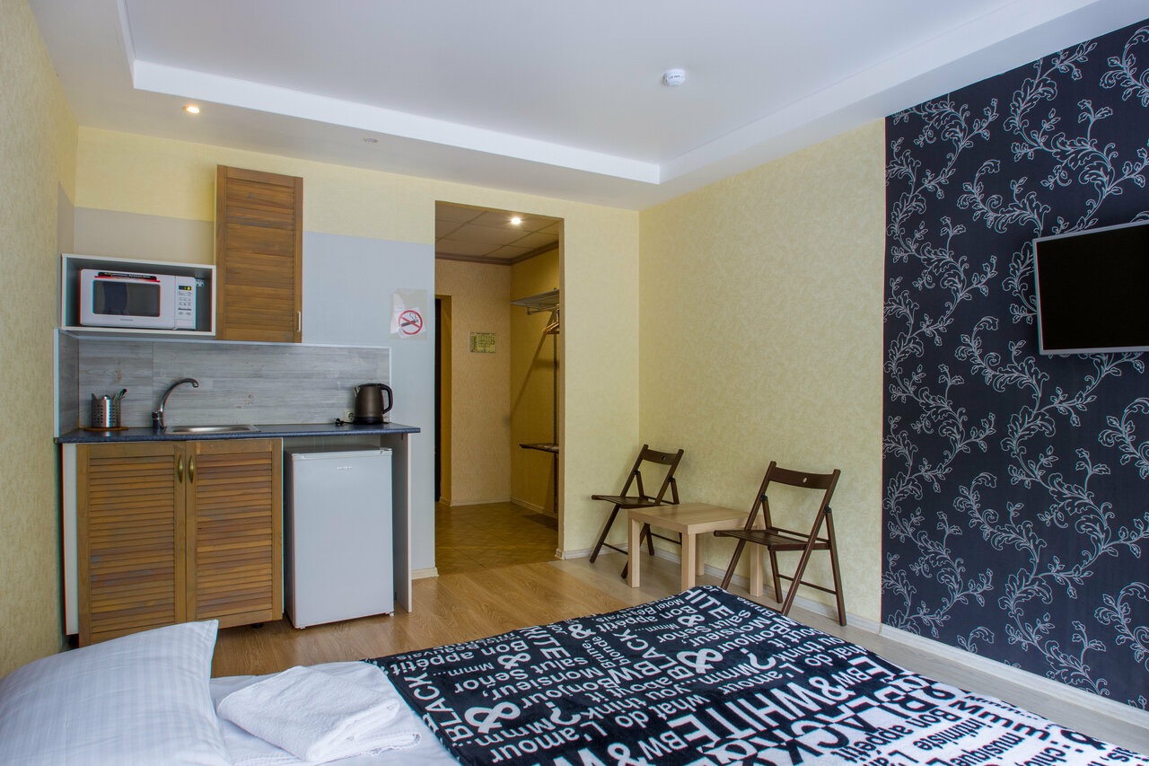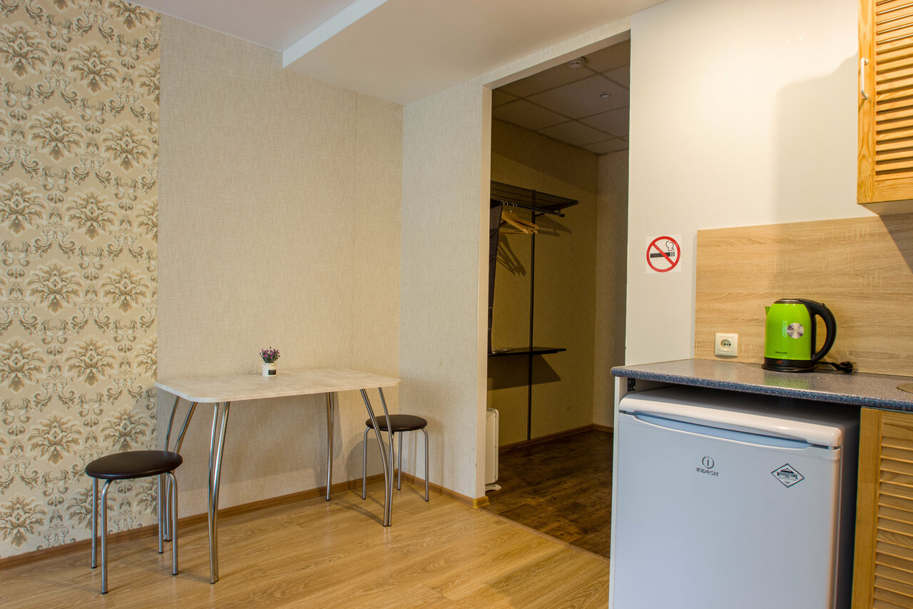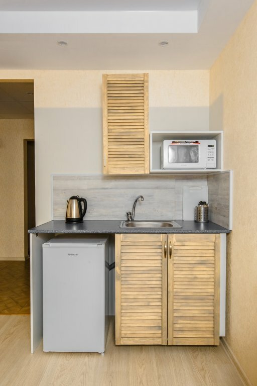 Жили с 22.08.22 по 26.08.22. Хороший приветливый персонал, чисто. От метро в пешей доступности. Оставить машину — нет проблем, вокруг спальный район. Есть кухня — микроволновка, тостер, холодильник, чайник.