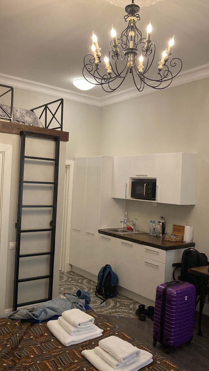 Уютно, кровать на втором ярусе и плюс и минус. Из минусов — парковка во дворе очень темная, могут возникнуть проблемы. В парадной крутое окно, на котором можно сделать бомбическую фотку. Персонал вежливый, дали бесплатный билет на речную прогулку на теплоходе