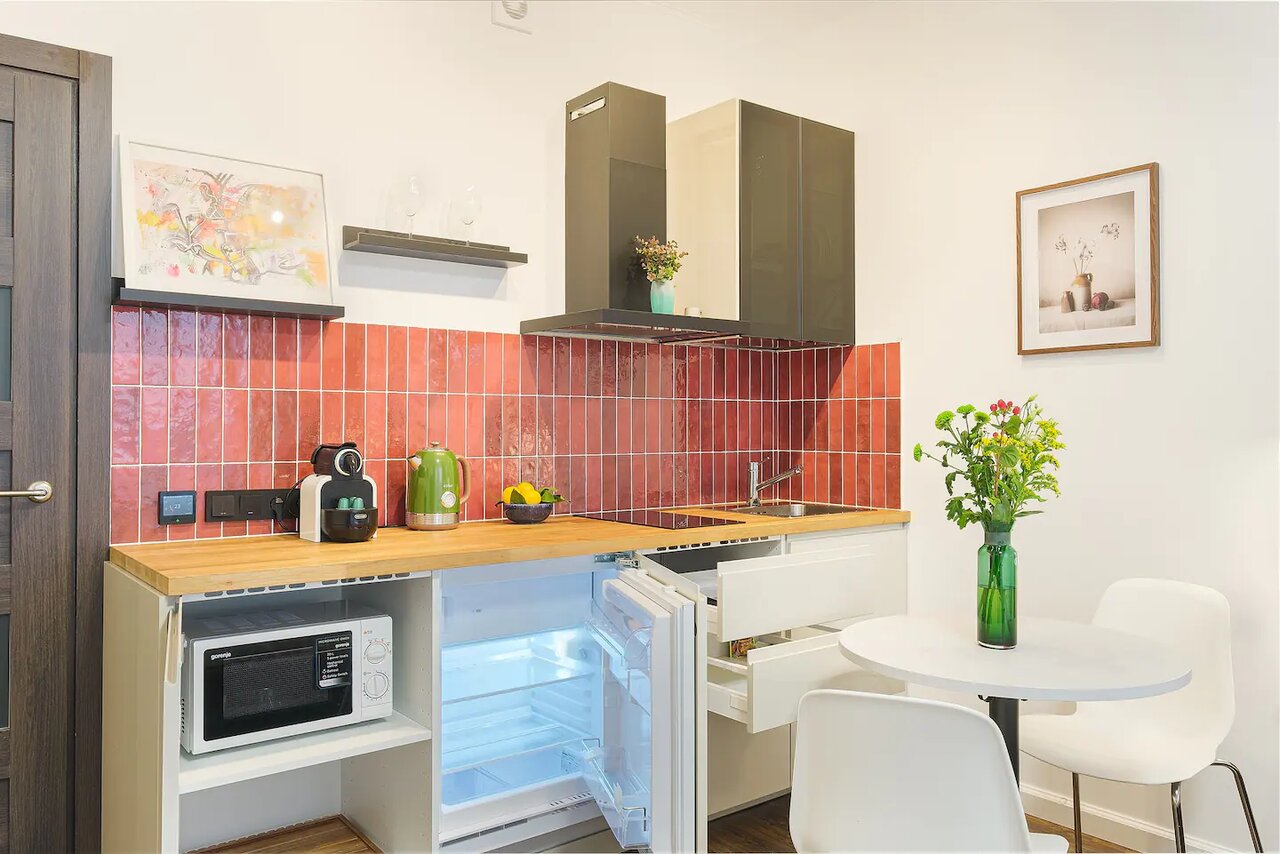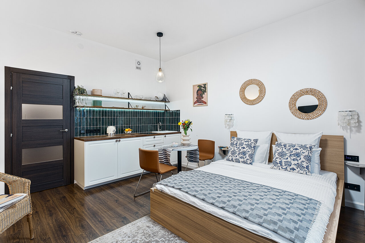 Очень рады что выбрали эти апартаменты, современный дизайн и ремонт, в комнате нсть все необходимое, включая мелочи типа зарядки для телефона, имеется даже зонт. Расположение очень удобное, до метро пешком по прямой афальтированной дороге; в жилом районе есть всё необходимое: магазины, аптеки, крупный тц и тд. До центра 15 минут. Очень внимательный менеджер, всегда на связи, с удовольствием выберем в будущем эти апартаменты и порекомендуем знакомым!
