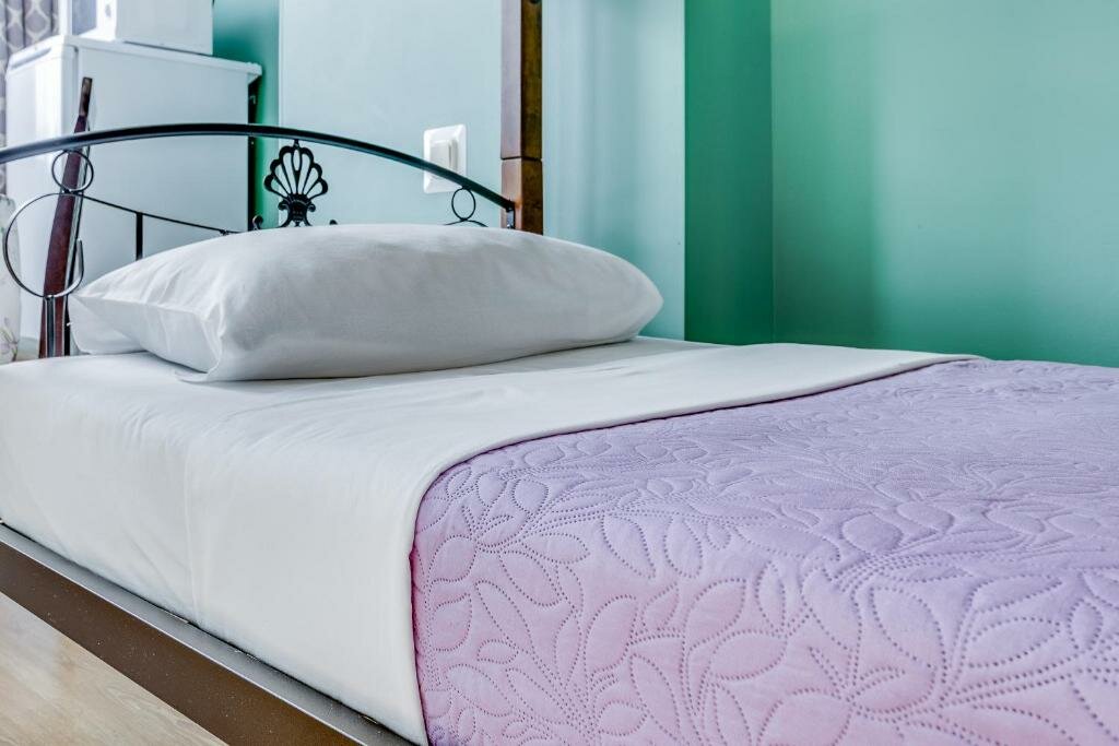 Удобное расположение, тихий двор. Свой санузел с ванной. Кухня общая, но проблем не возникало. Вообще мало пересекались с соседями. Комната с санузлом соответствует описанию и фото на сайте. Парковки нет, но в ближайшем окружении можно найти бесплатные места. Хозяйка приветливая, несколько раз интересовалась, точно ли приедем и когда, объяснила как найти нужный подъезд.