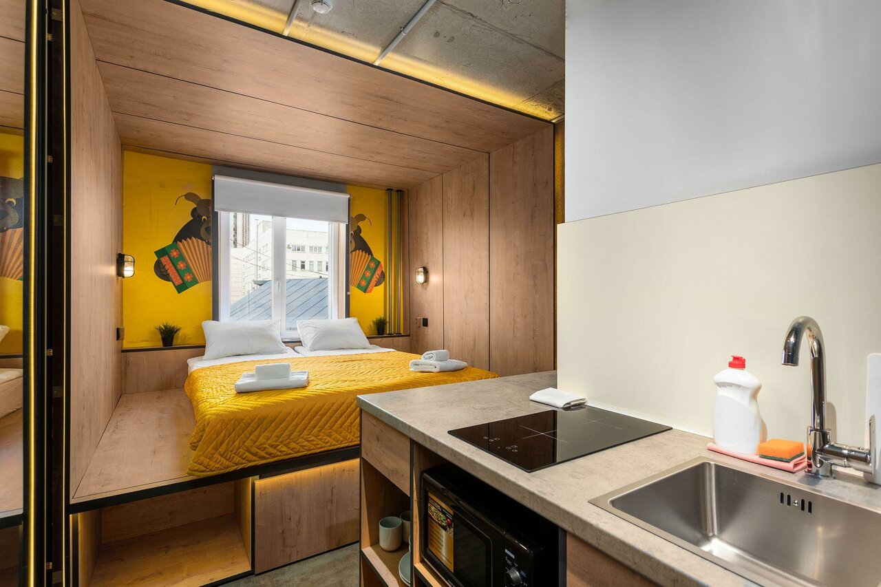 Студия 17кв.м. с двуспальной кроватью и кухней