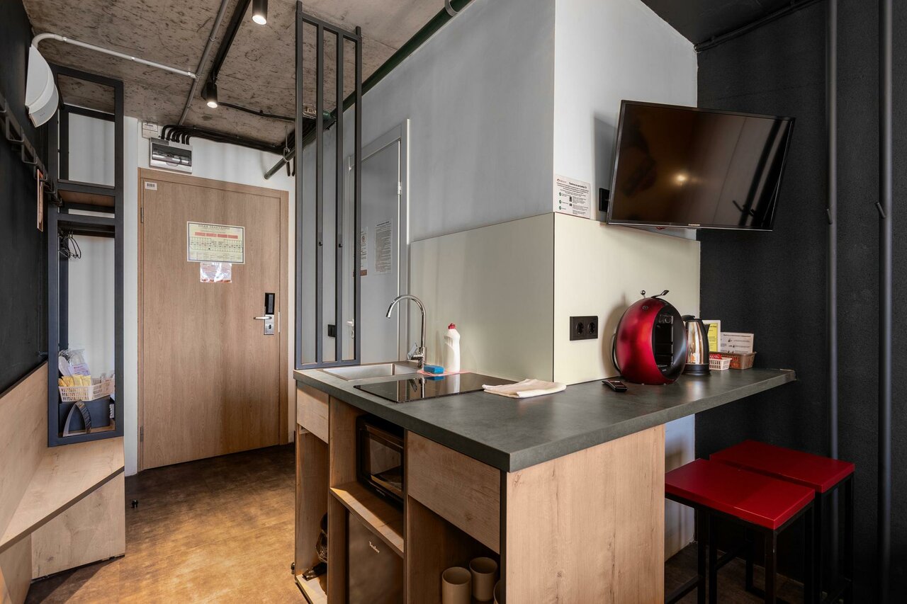Удобства: ✔ Бесплатная парковка и велопарковка ✔ Кафе, прачечная, лифт, пандус ✔ В номерах: санузел, холодильник, телевизор, фен, чайник, микроволновка, плита ✔ Рядом парк, до центра — менее 5 км