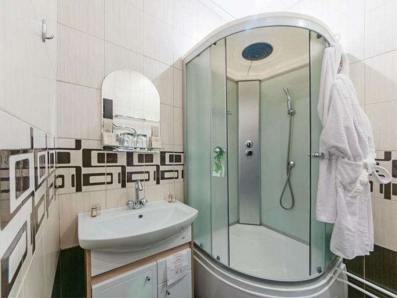 Парковка 500 р. в сутки, рядом на улице бесплатно, в номере грязно, в душе вода не уходит, готовьтесь мыться в болоте. Холодильник, чайник и кондиционер отсутствуют. Телевизор не показывал 1й мультиплекс. В номере одна прикроватная тумбочка. В номере 4 розетки и все около подоконника, кто планировал — гений….. Отдельное спасибо администраторам, все возникавшие вопросы решались быстро и с улыбкой, заменили лейку душа, которая была неисправна, прочистили слив душа, правда это не помогло….