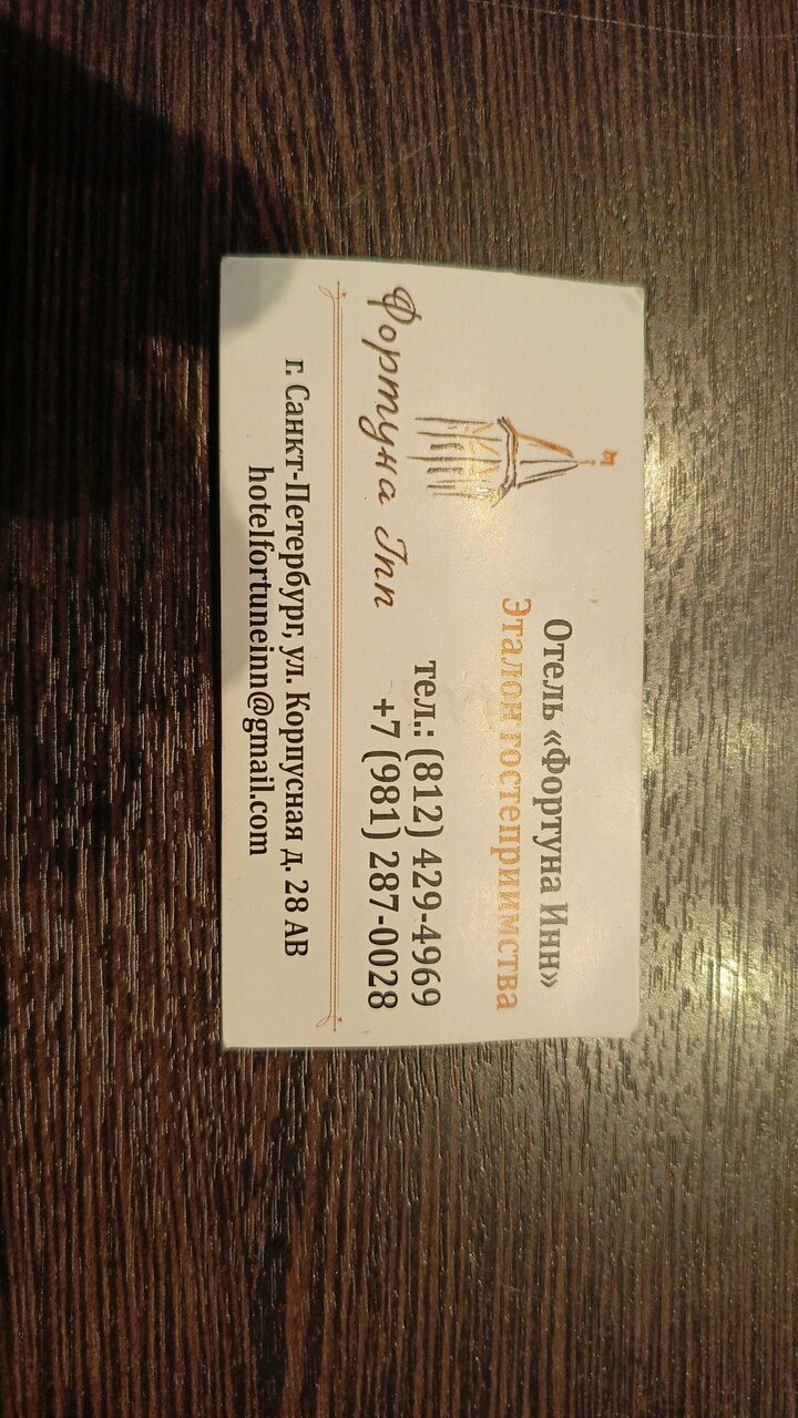 Контакты: ☎ +7 (812) 429-49-69 (администратор) ☎ +7 (981) 287-00-28 hotelfortuneinn.ru