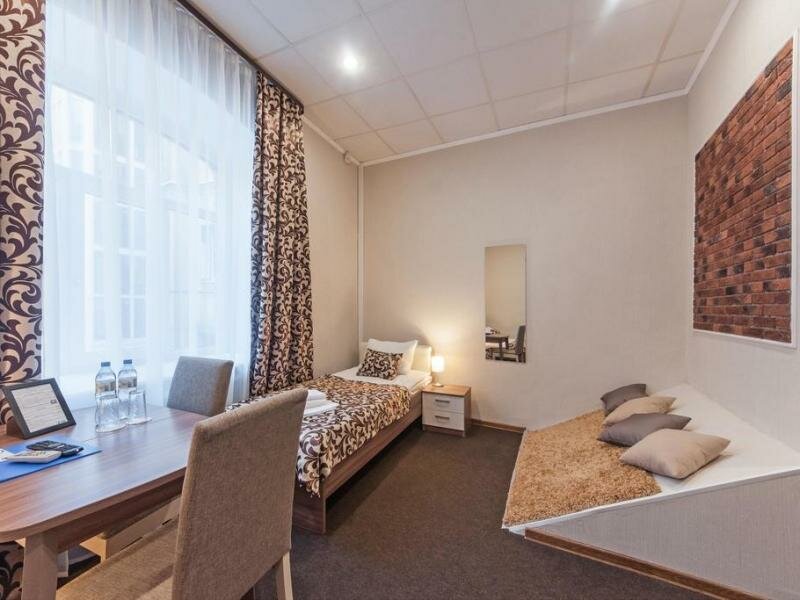 Небольшая уютная гостиница, которая находится в очень старом доме. Она располагается в 5 минутах ходьбы от метро Чкаловская. Мы прожили в этой гостинице 5 дней и чувствовали себя как дома. Нас встретили тепло и радушно. Номера находятся на первом, втором и третьем этажах. Мы жили на 2 этаже, где располагалось небольшое кафе. Номер достаточно просторный, чистый, с кондиционером. Холодильника в номере не было, он есть в кафе. Также в наличии всегда кипяток для напитков и столовые приборы. Мы остались довольны и всем рекомендуем!