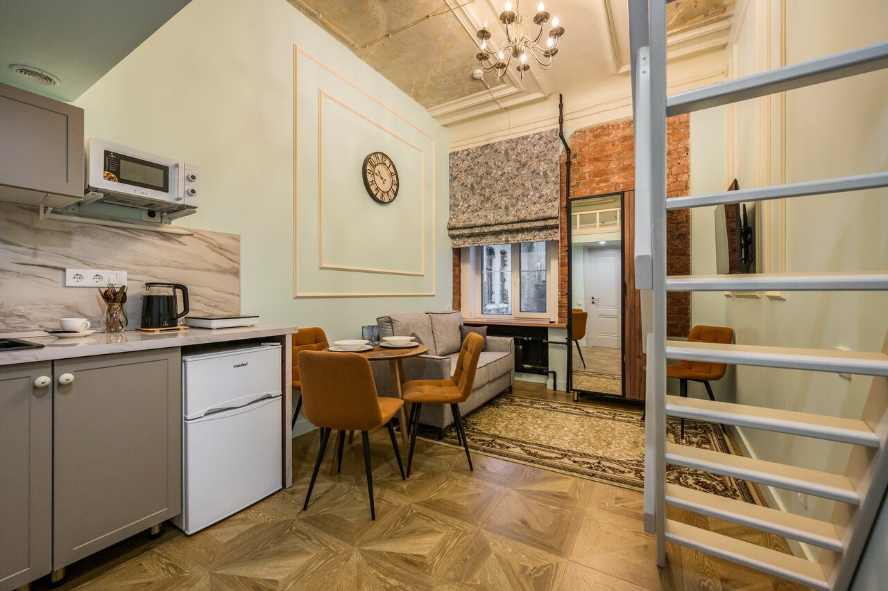 Был 9.02.24-11.02.24. Апарт-отель очень порадовал. Расположение — отличное, центр города, все главные доминанты, визитные карточки города, рядом. Само здание сразу окунает в атмосферу Питера. Ажурная чугунная лестница в парадной и лофт самого отеля никого не оставит равнодушным. Дизайн, компоновка и оснащение номера продуманы очень тщательно. Приятный теплый пол в прихожей и санузле. Есть все необходимое, чтобы приготовить/разогреть перекус (если надоест питаться в многочисленных кафешках в округе)). Чистота в номере. Полное отсутствие шума от соседей (дом-то жилой!). После длительных прогулок по музеям/достопримечательностям/кафе возвращаться в уют отеля вдвойне приятно.