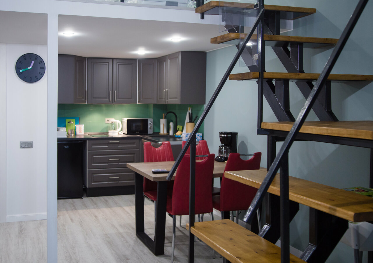 Наверное, лучшие аппараты в которых удалось остановиться в центре Питера. Отличное соотношение цена/качество. За приятную сумму получаете двухуровневую квартиру с кухней, двумя диванами, кроватью шкафом и всем остальным необходимым. Удобная система бесконтактного заселения и выселения. При желании за доп. плату можно организовать ранний заезд. Если еще приедем в Питер — будем бронировать только тут