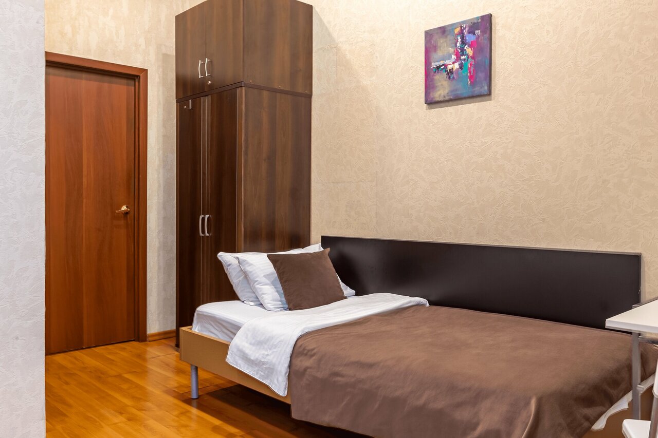 Жили 6 дней в этой гостинице. Всё понравилось. Продумано. Чисто, уютно. Есть в номере собственный душ, холодильник, маленький столик для еды, телевизор. У каждой кровати розетка,тумбочка, освещение. Удобное расположение: три минуты до остановки. Хозяин на связи. Спасибо большое! Рекомендуем.