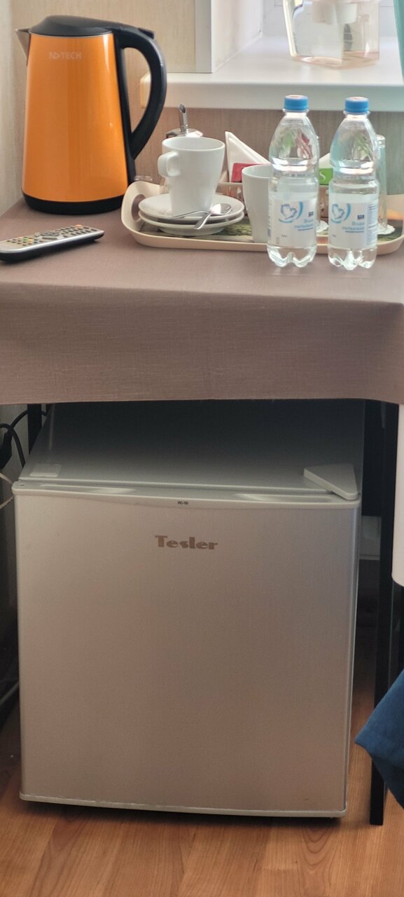 Всё хорошо, когда соседи в 3-5 часа ночи спят. Нам не повезло, наши соседи не спали. Гремели, говорили. Холодильник маленький, но шумный, как вариант не включать. А так всё хорошо. Рекомендуем.
