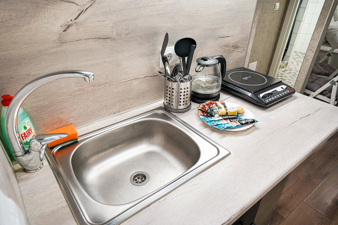 - Наличие всей необходимой техники (холодильник, микроволновка, плита, чайник).