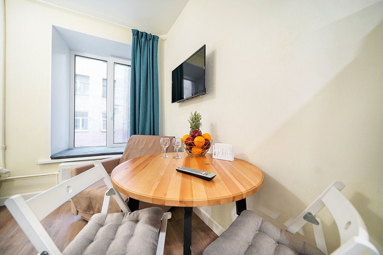 Очень удобное расположение, рядом метро красная и оранжевая ветки в 5 мин. пешком. Там же рядом магазины — дикси, Владимирский пассаж, dns, аптеки, буквоед и прочие. Вокруг много кафе. До невского проспекта 10 мин. пешком. Номер у нас был не большой. Соответствует тому, что было в описании. Удобная большая кровать. Стол, стулья, место для вещей. Также в номере кухня и ванная совмещенная с туалетом. У входа место для верхней одежды и вешалки. В номере чисто и убрано. Через дорогу мусорные контейнеры. В номере нужно прибираться самостоятельно. Соседи были тихие и приветливые. Было комфортно, всё понравилось!
