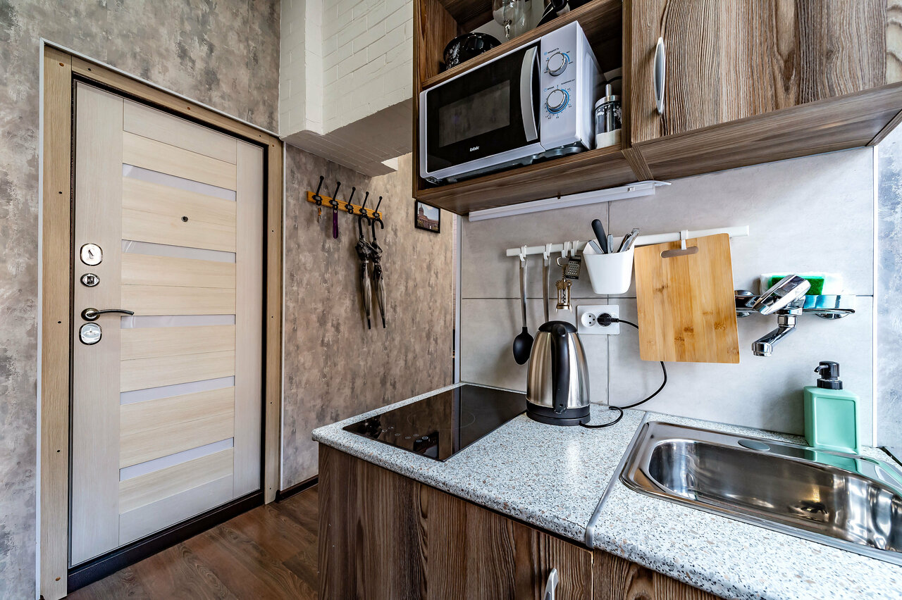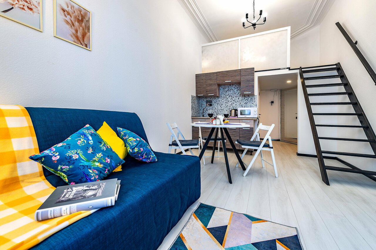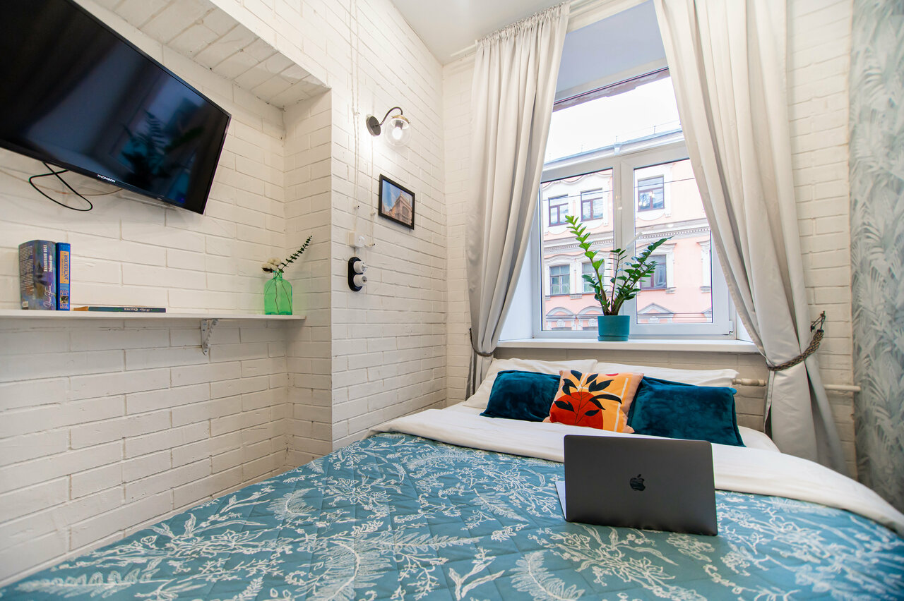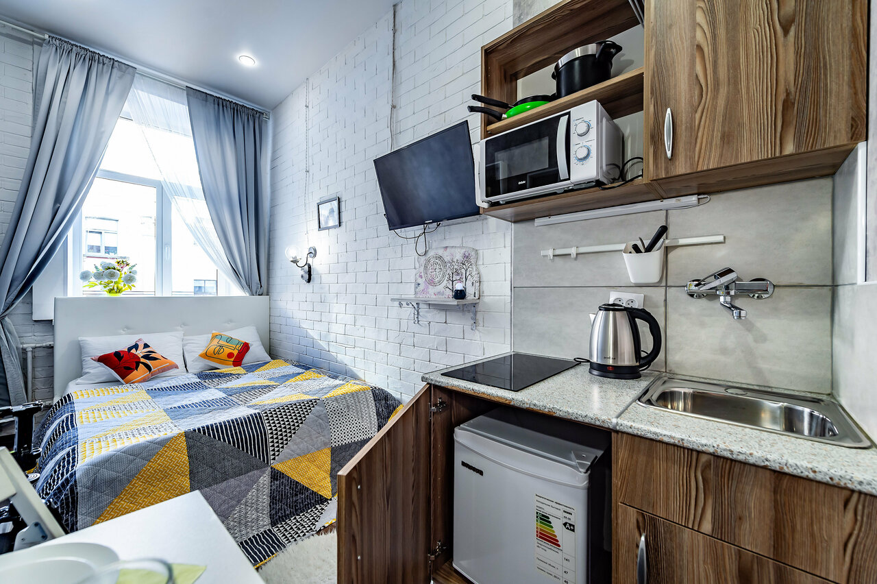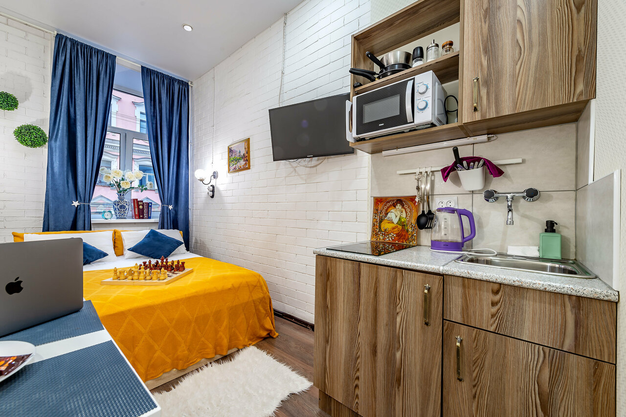Хороший бюджетный вариант в историческом центре недалеко от трёх линий метро. Из особенностей, к которым нужно быть готовым: маленькая, реально маленькая площадь помещения и отсутствие окон. Есть принудительная вентиляция, можно включить дополнительную, но это все равно не заменит открытого окна. Хоть и не задыхались, но хотелось больше свежего воздуха. Из плюсов хочу отметить быстрый интернет, хорошую звукоизоляцию (или везло с соседями), стиральную машину в коридоре с программой в 15 минут (очень выручало), отзывчивую быструю поддержку. Залог вернули вечером в день отъезда. В принципе, за соотношение цена-качество ставлю твердую четверку.