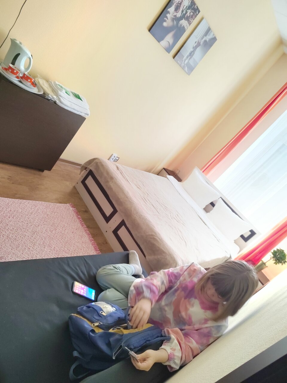Отдыхала с ребенком, приезжали на несколько дней. Всё очень понравилось, идеальная чистота и прекрасный номер. В номере чайник, чашки, сахар и чай бесплатно. Есть кухня с микроволновкой и плитами, холодильник. Также выдают одноразовые тапочки, гигиенические принадлежности и два полотенца. По локации тоже всё прекрасно, рядом центр, до метро 10 минут пешком, наземный транспорт в двух шагах.