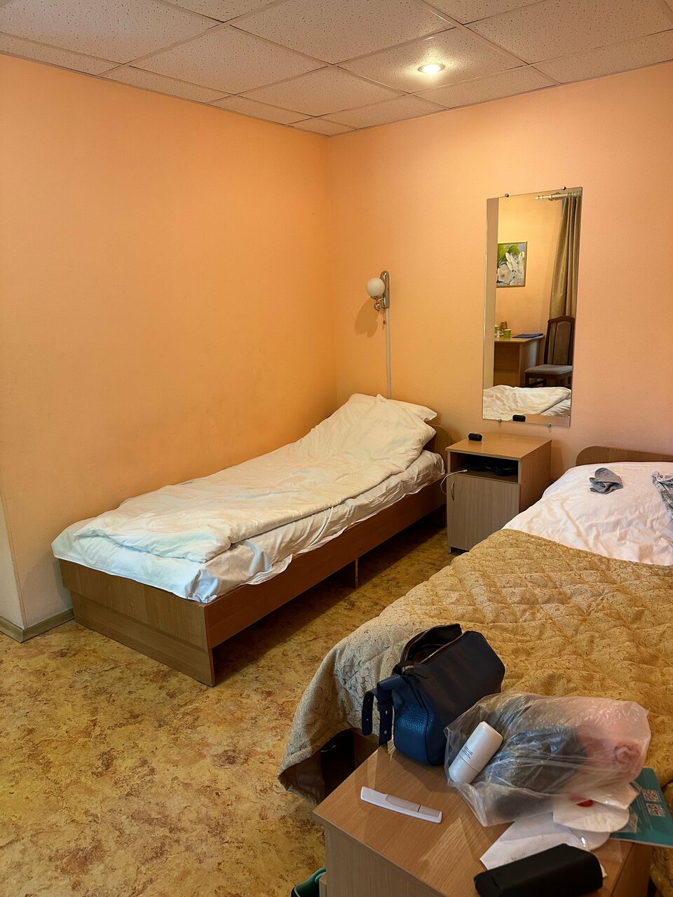 Номер простой, чистый. Всё есть: санузел, холодильник, шкаф, стол, телевизор, кровати с мягкими матрасами. Рецепшн: умные и внимательные женщины в прекрасных интерьерах. О цене номера говорить не буду, а то в следующий раз приеду, а все номера заняты. Проходите мимо, товарищи!)))