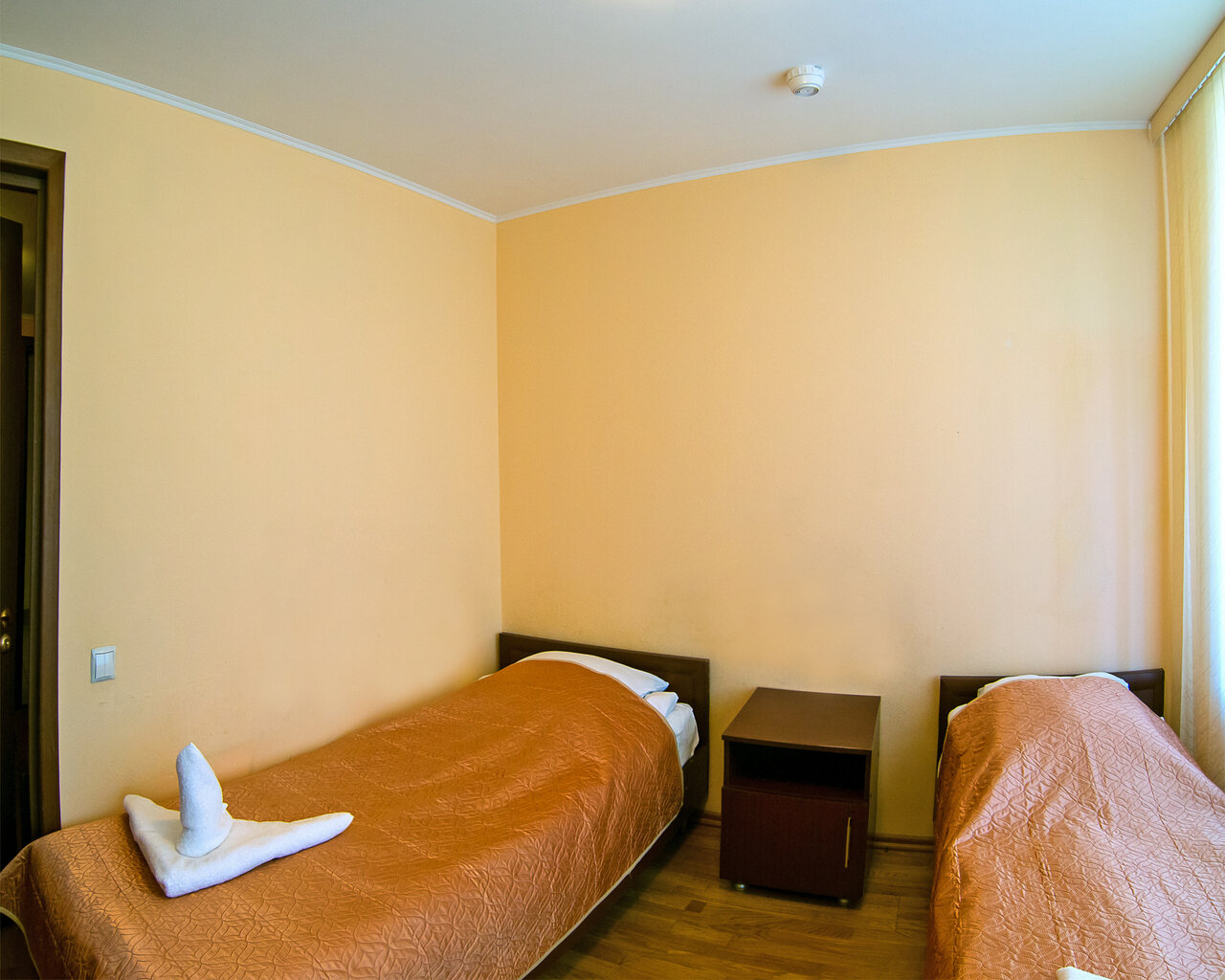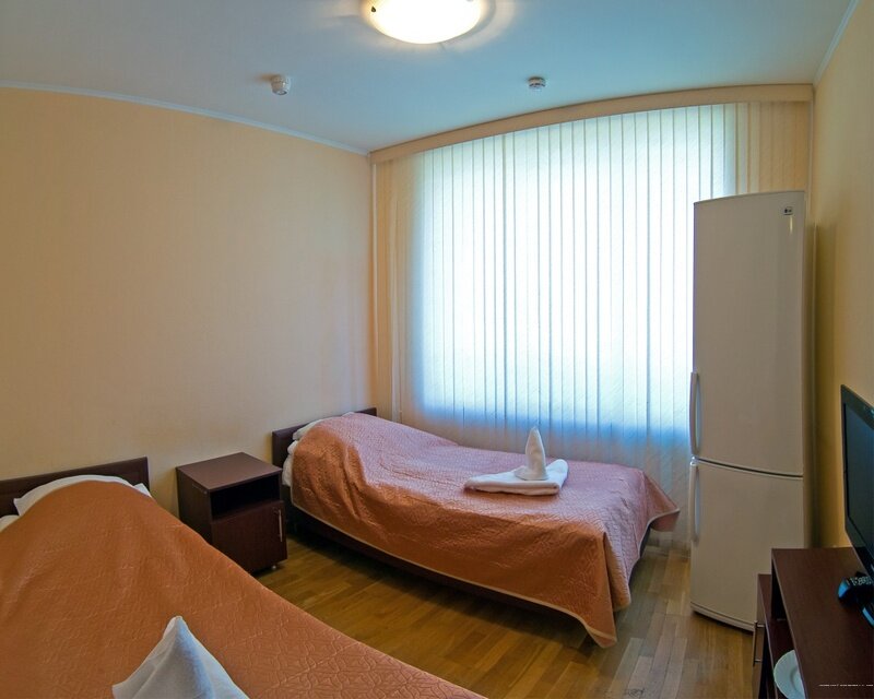 Прекрасная гостиница без лишних изысков, но с полным комфортом. Находиться на ведомственной территории — всё спокойно, нет посторонних людей, тихо и в самой гостинице на территории. Номера чистые, уютные. В номерах полный набор полотенец, мыло, шампунь одноразовый, кружки, телевизор, холодильник. Есть общая кухня, кулер с холодной и горячей водой. Посуду можно получить у администратора. На территории есть кафе, где можно позавтракать с 8:00 и пообедать (только нал.). У меня остались только положительные впечатления!