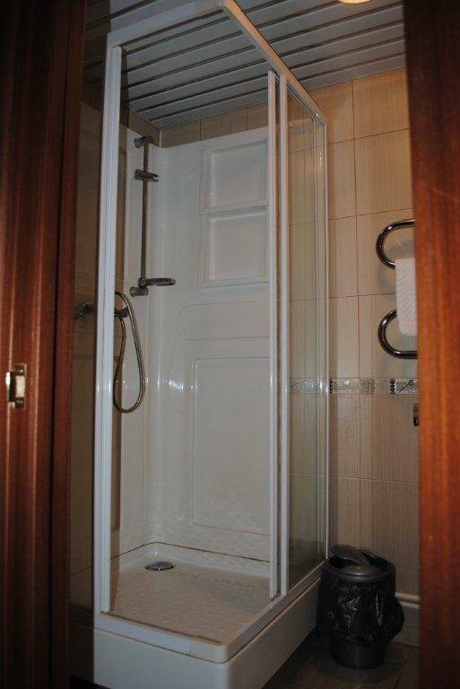 Все чистенько, аккуратно. Душевая кабина, фен, телевизор, холодильник имеются.