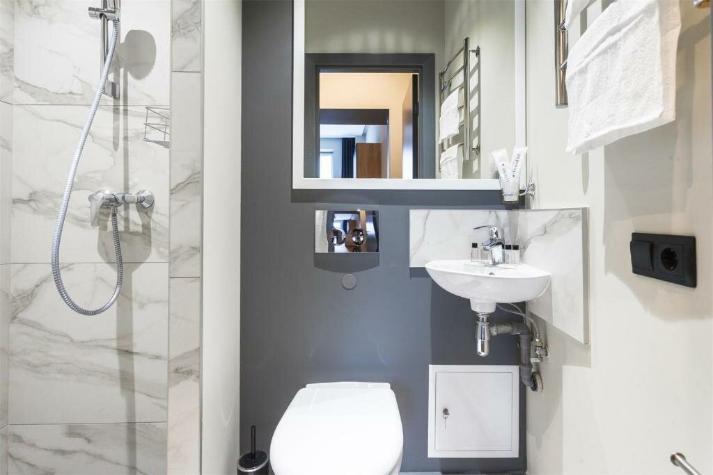 Новый апарт отель. Номера скромные, но все необходимое имеется и все new. Месторасположение отличное — хочешь пешком, хочешь метро — парадные места рядом.