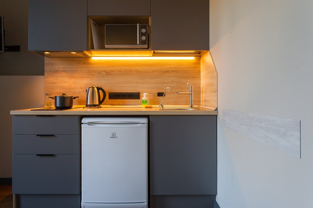 Гостиница предлагает комфортные номера с кухонными уголками, звукоизоляцией, кондиционером, Wi-Fi и телевизором. Доступны услуги трансфера (включая аэропорт и вокзалы), тренажёрный зал, парковка и проживание с животными (платно).