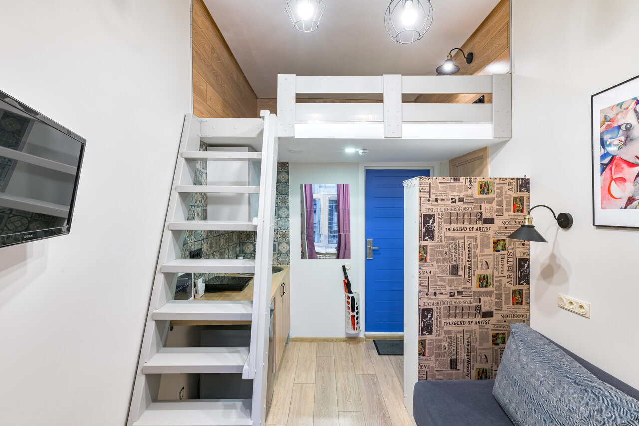 Двухуровневые тематические квартиры-студии вместимостью до 3 чел располагаются на 2-ом этаже, в историческом здании, в домашнем мини апарт-отеле на 6 номеров, прямо над консульством Румынии. Справа, за углом здания - Дворцовая площадь с Эрмитажем ...