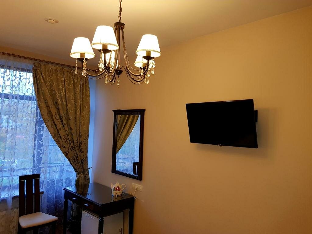 Одна кровать, душ, туалет, телевизор, wi-fi, стол, чайник, микроволновая печь, холодильник, кондиционер, посуда для чая. Цена за сутки. Завтрак оплачивается отдельно.