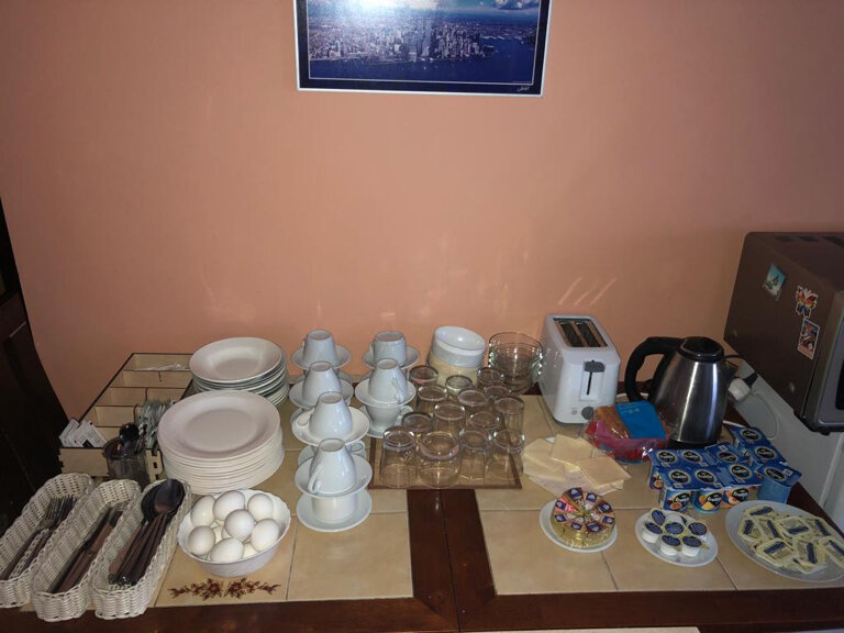 Две кровати, душ, туалет, телевизор, wi-fi, стол, чайник, микроволновая печь, холодильник, посуда для чая. Цена за сутки. Завтрак оплачивается отдельно.