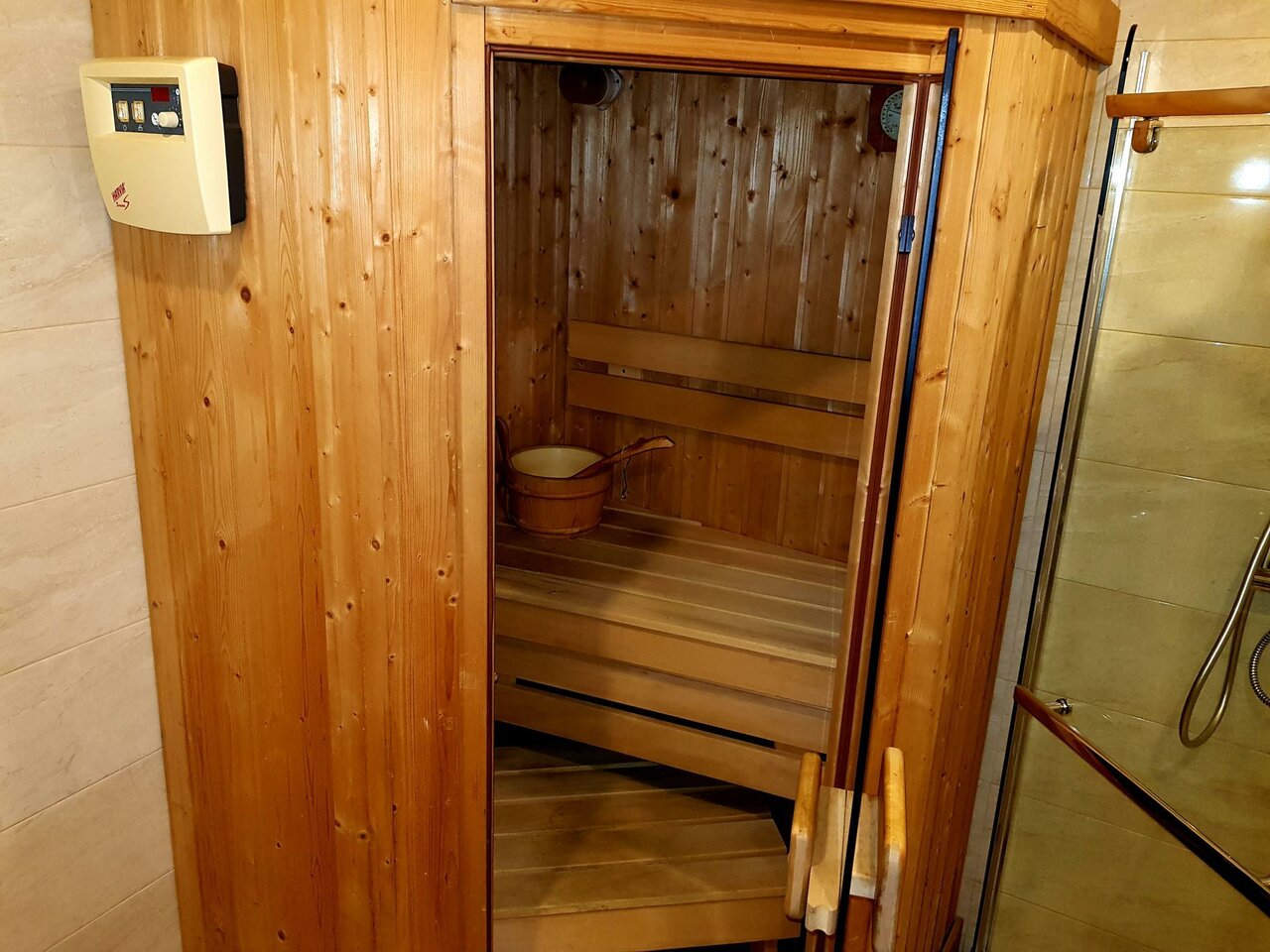 30м2.Спальная + гостиная с диваном. Чайная станция+кофемашина. Кровать размера King Size. Сауна с душем. Халаты. Мини-бар.Завтрак - шведский стол включен в стоимость.