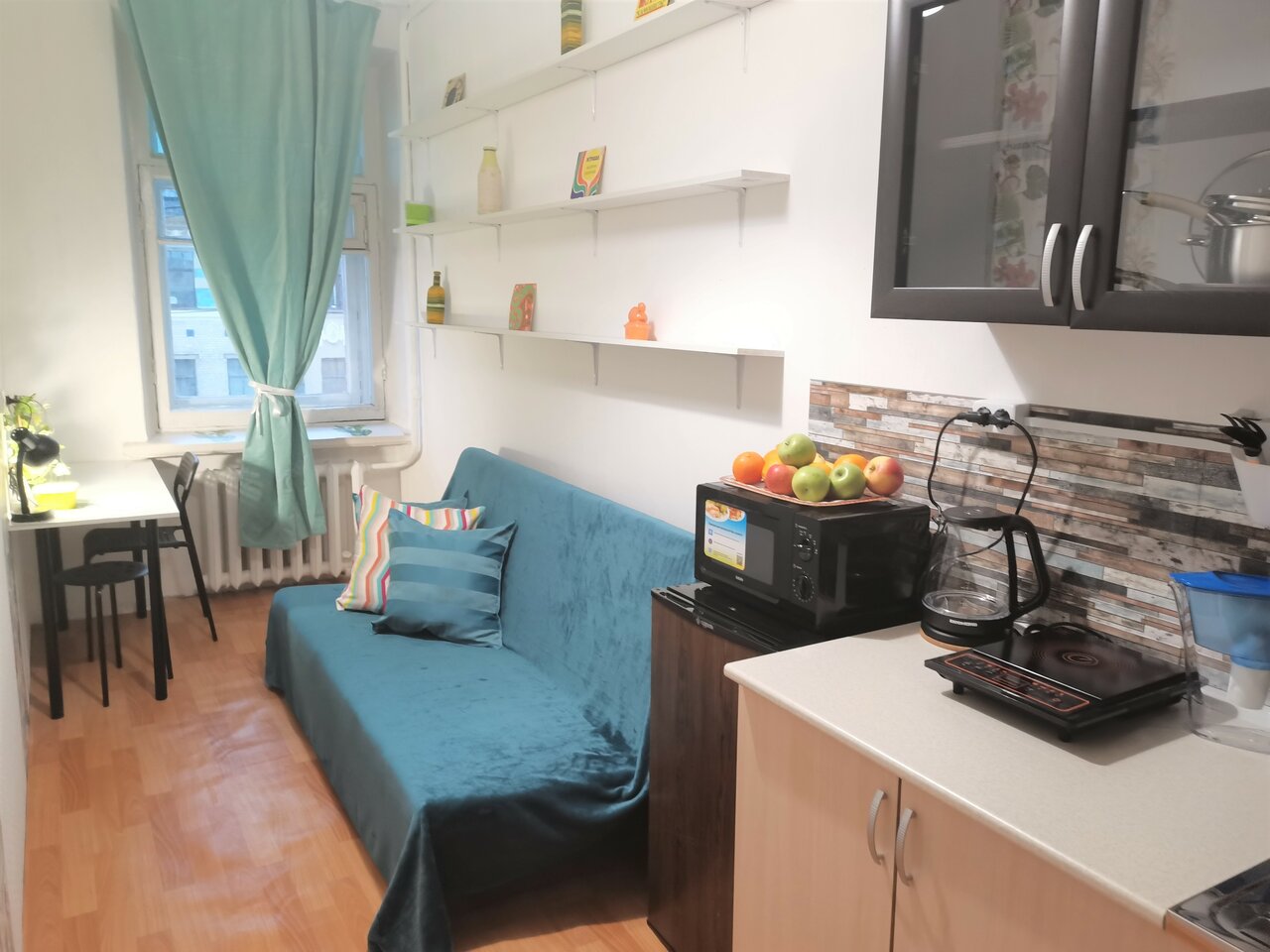 Добрый день, бронировали номер на 5 суток, остановились на этом варианте. Номер не большой , но все необходимое есть. Жили на 6 этаже, вид потрясающий с окна.В номере есть кухня( микроволновка, индукционая печь, посуда, даже растительное масло, соль,сахар, чай, кофе).В номере комфортно и уютно. По уставу заселение после 15.00, выселение до 9.00, у нас поезд пришёл рано, что нас очень порадовало, что нас заселили в 10.30, номер был уже готов, за это отдельная благодарность!!Также при выселении, разрешили сьехать в 10.00, и разрешили оставить чемодан на хранении, большое человеческок спасибо! Встретила нас доброжелательная девушка, все подробно расказала, скинула ссылки, сорентировала как где добраться! Расположение просто шикарное, в центре, рядом много известных достопримечательностей, метро рядом, магазинов , кафе, столовых, тоже много. В общем от Питера только шикарные воспоминания, уезжать не хотелось. С погодой очень повезло, кстати в номере есть даже зонтик