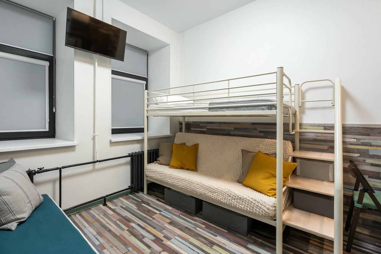 Добрый день всем!!! Жили в room4 6 дней на майских праздниках. Очень понравился и номер, и местоположение!!! В нём есть всё: и посуда, фужеры, кувшин, халаты, тапочки, зубные щётки. К кровати наверху ведёт не ‘пожарная’ лестница, а удобные ступени. Кажется, что это мелочи, но это не мелочи, а наш комфорт!!! Очень чистые подушки, матрасы! Прекрасное место!!! И гулять по Петроградской стороне одно удовольствие!!! Однозначно рекомендую!!!!