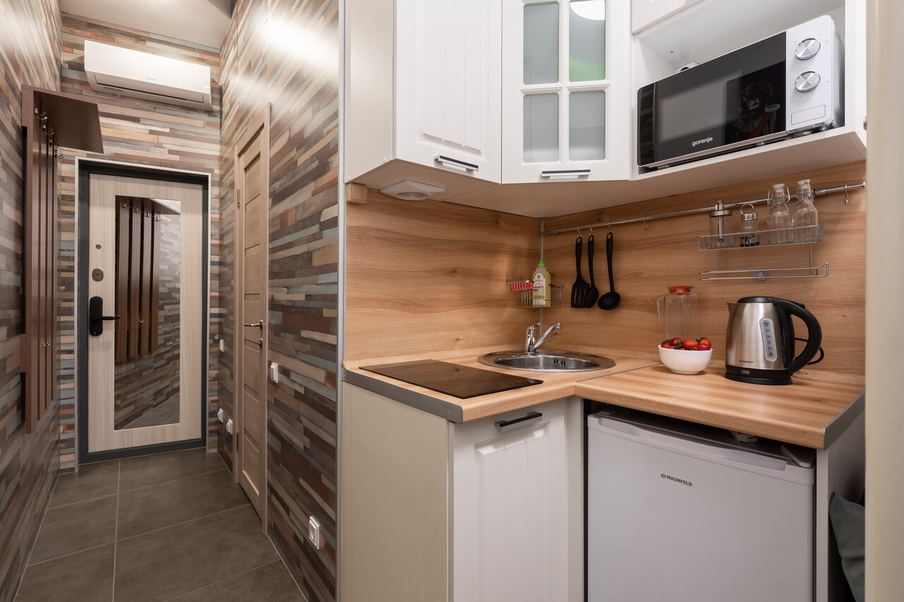 - Наличие кухонной техники (плита, чайник, холодильник).