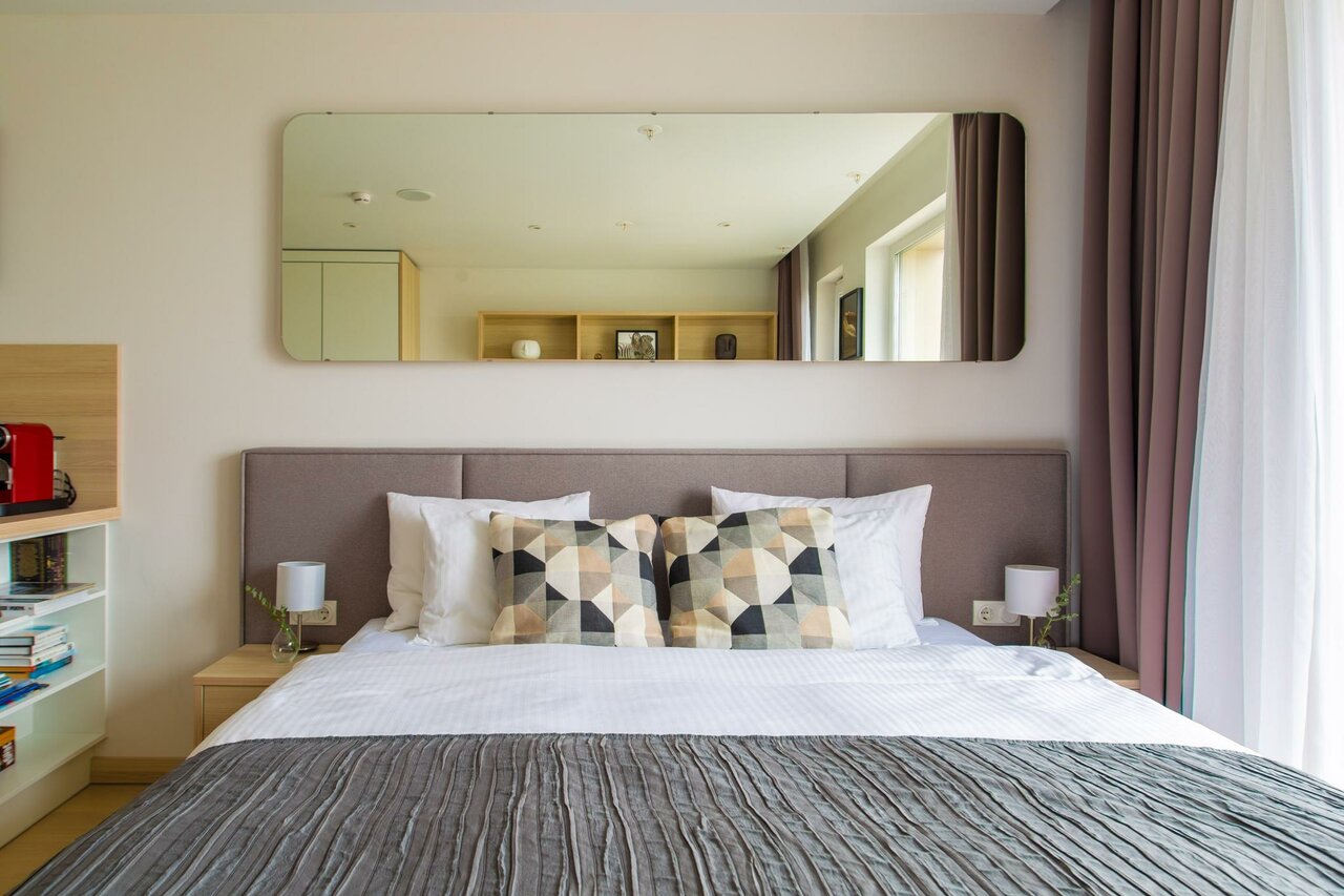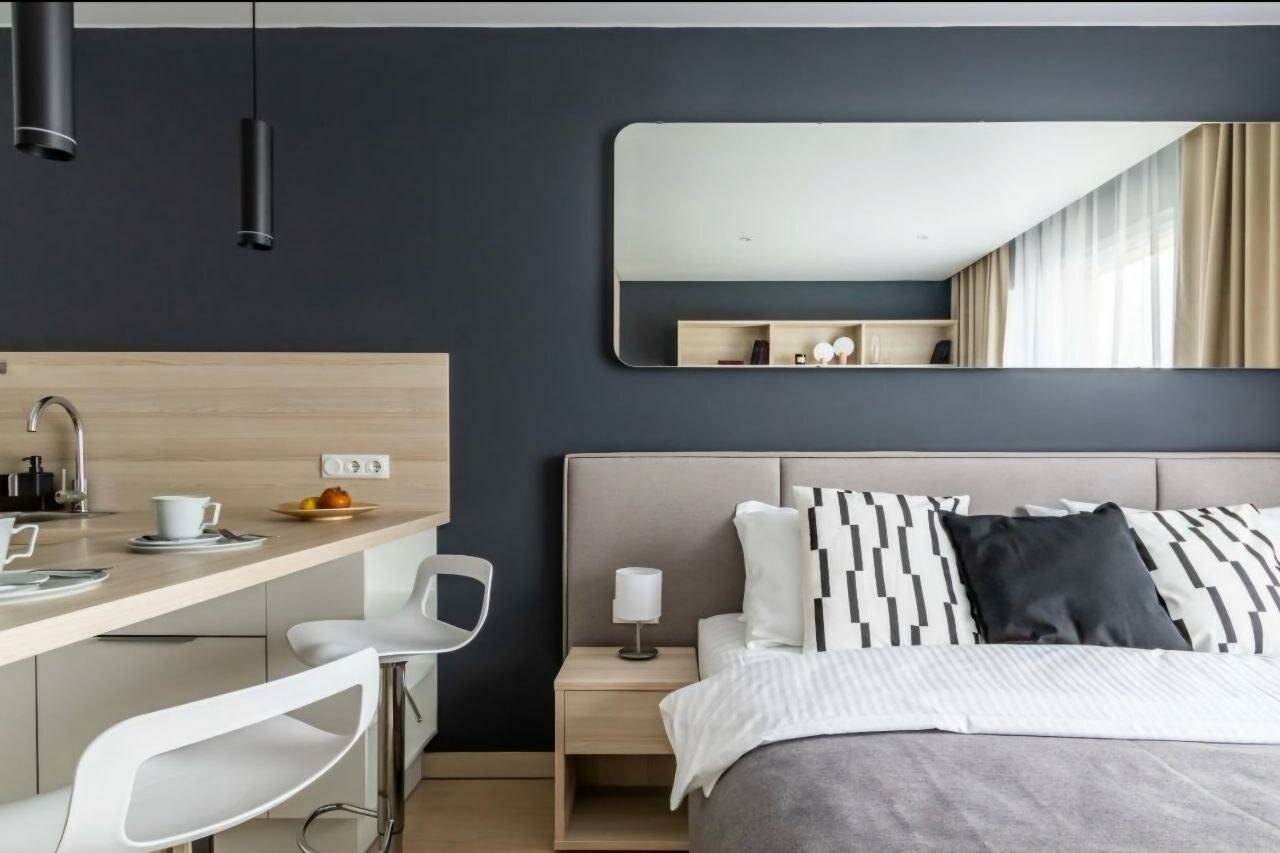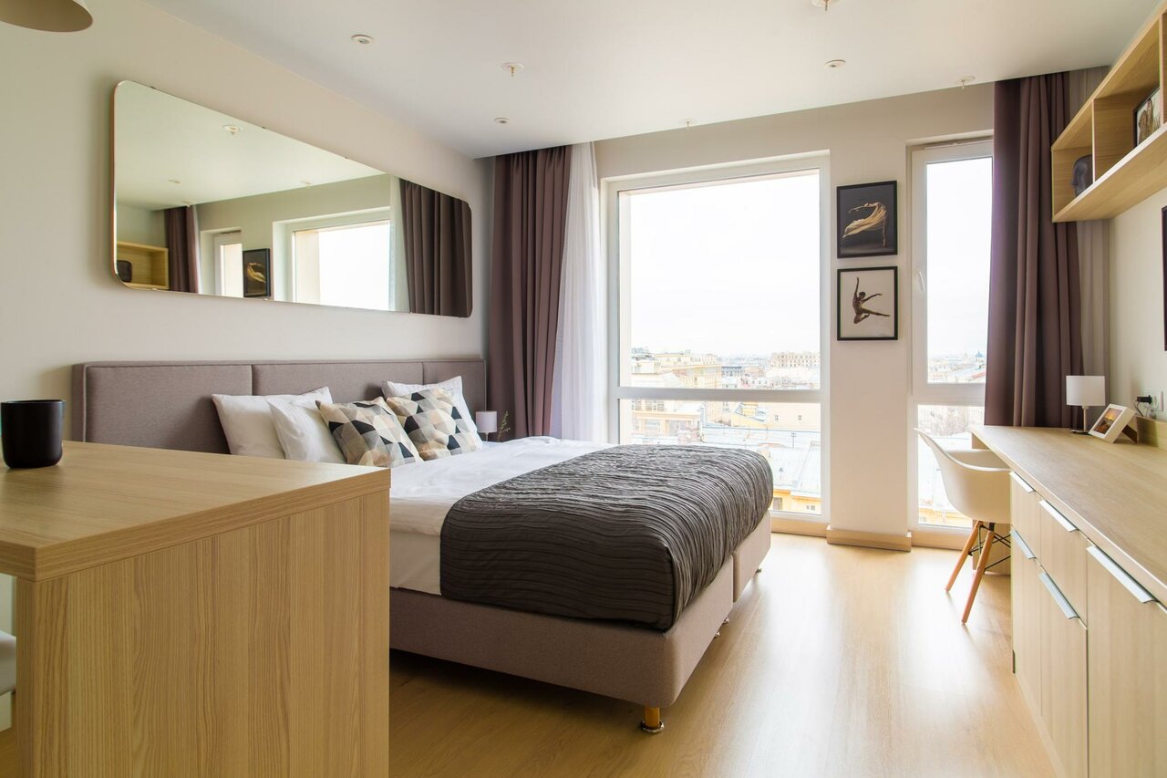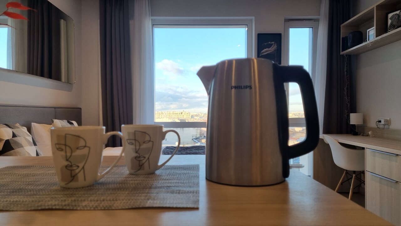 Проживала в апартаментах 6 ночей в апреле. Всё понравилось. Есть всё необходимое, приехала бы и на более долгий срок. Очен удобно: инфраструктура здания, всё есть для жизни. Внизу кафешки, магазин в здании с торца, спортзал при желании, массаж-маникюр-парикмахерская. До центра не так далеко. Вид на крыши вдохновляет. Хозяйка Лия всегда на связи. Кровать отельная комфортная. Все было классно, благодарю!
