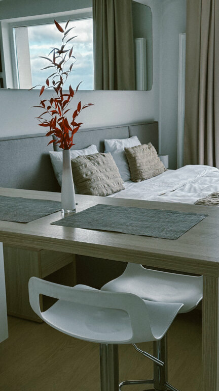Ночевали с 28 по 30 октября. Номер просто восторг. Панорамные окна- это отдельная фишка номера. Все чисто,кровать мягкая, постельное белье идеально белое и приятное. Внизу есть лобби. Хозяйка- Лия очень приятная, доброжелательная девушка. Было приятно общаться(всегда поможет и на связи в любое время). Рядом есть все необходимое(магазины, аптеки). Обязательно вернемся уже раз.