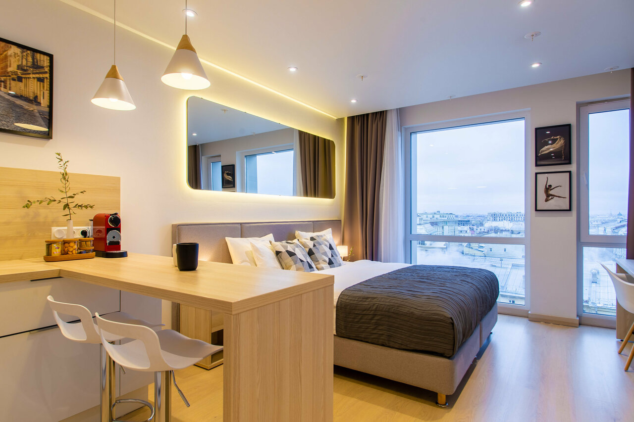 Была в Петербурге с 27 июля по 2 августа. Апартаменты отличные! Чисто, уютно, стильно, комфортно. Есть всё самое необходимое. Вид на город шикарный, 8 этаж. Удобное расположение самого отеля. Отдельно хочется поблагодарить Лию. Встретила, разместила, всё объяснила, показала. Всегда на связи. В следующий раз когда буду в Петербурге, то только сюда. Всем рекомендую!