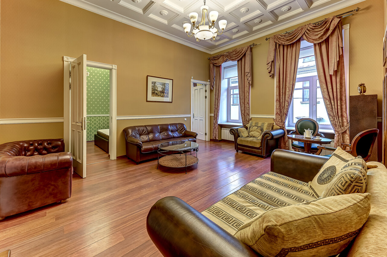 - Удобные постели с большими матрасами.; Атмосфера исторической классики Санкт-Петербурга.; Много окон с высокими шторами.; Шикарные апартаменты.; Красивый интерьер (напоминает Эрмитаж).