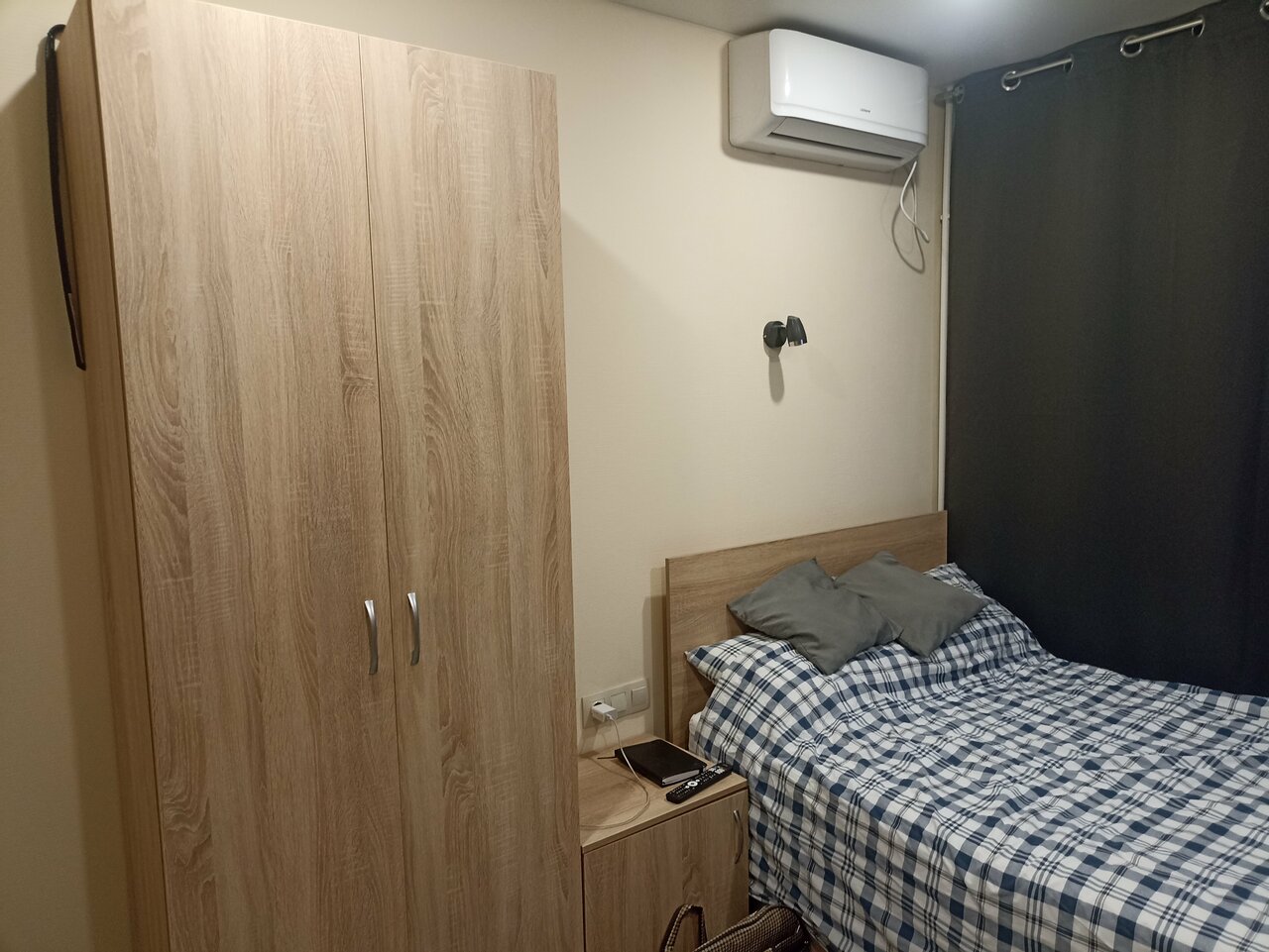 Не понравились апартаменты- на фото номер выглядел иначе в отличие от того, который бронировали. Маленькая двухспальная кровать стояла прямо в коридоре!! Хотя на фото, она должна была стоит возле окна! Вдвоём в данном номере невозможно было развернуться. Розеток крайне мало, и тк кровать была в коридоре, то даже телефон некуда было воткнуть на зарядку. Про ванную комнату вообще молчу-детская лейка, из которой еле текла вода, а чтобы горячая шла нужно было ждать мин 5! В номере была не комфортная атмосфера , благо мы приходили туда только переночевать. Ставлю с натягом 2 звезды лишь за его месторасположение и наличие кондиционера. Возвращаться в такие апартаменты больше не хочется. Красная цена за одну ночь-не более 1500, но не 5000, как просит хозяин.