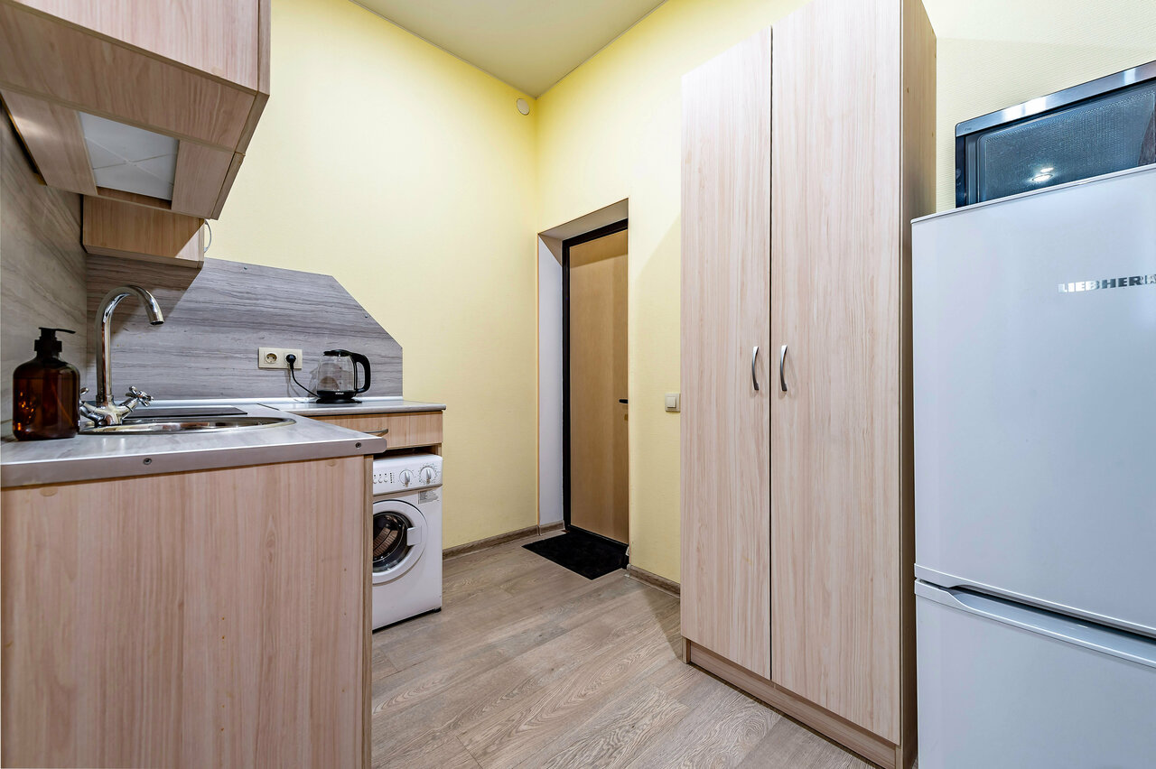 Хороший мини отель. В небольших аппартаментах всё имеется душ, чайник, холодильник, микроволновка, плита и даже стиральная машина. Предоставляют документы для тех кто приехал в командировку. Тихий двор, спал с открытым окном и за две недели ничего сну не помешало.