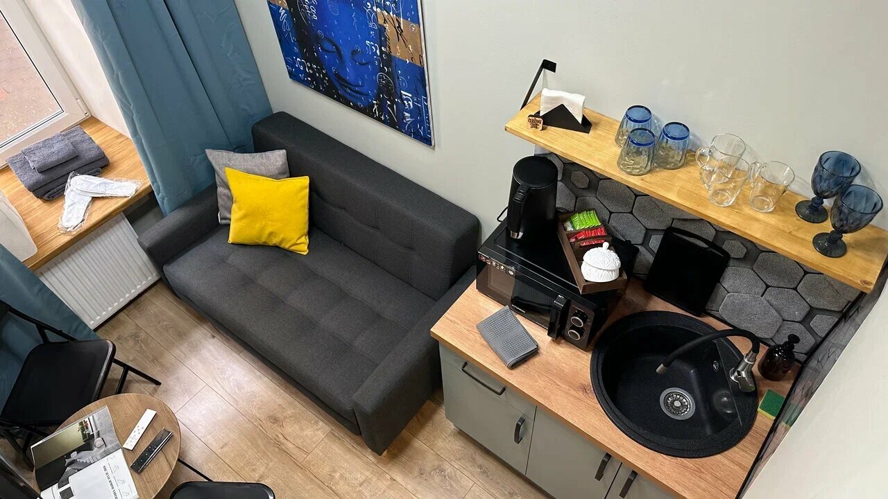 Служба поддержки была на высоте — персонал очень вежливый и всегда готов прийти на помощь. Номер оказался просторным и уютным, с удобной мебелью и современным оборудованием. Расположение потрясающее: в шаговой доступности как исторические достопримечательности, так и уютные кафе. Идеальное место, чтобы насладиться атмосферой города. Чистота в номерах была на высоком уровне, а маленькие детали, такие как бесплатный чай и кофе, добавили комфорта. Рекомендую ХотАпарт всем, кто ищет комфортное и удобное место для проживания!