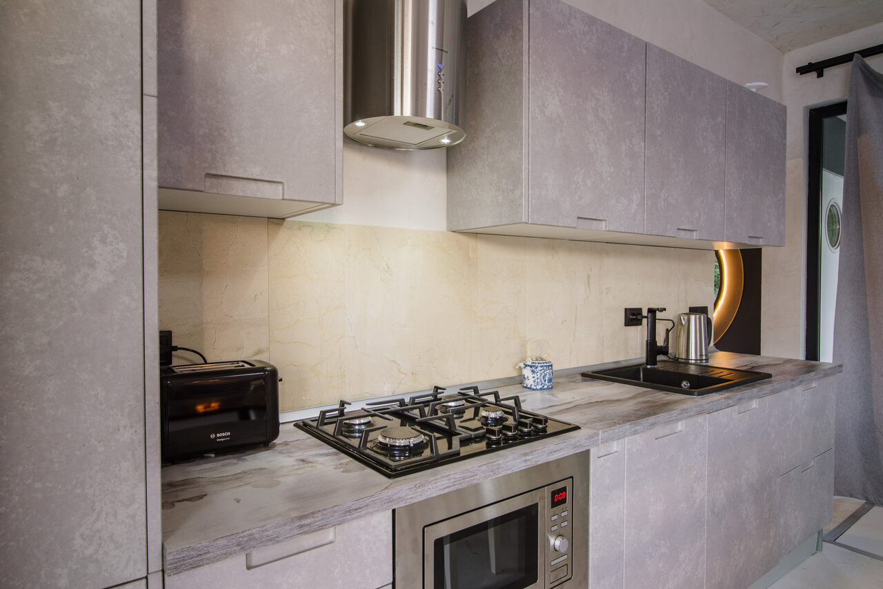 - Полностью оборудованная кухня (холодильник, тостер, посудомоечная машина).