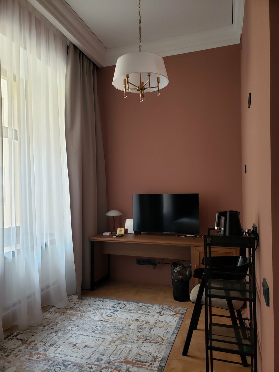 Я дизайнер штор и у меня был здесь объект! Любопытно выглядит совершенно отремонтированное историческое здание! Красивое лобби удобное расположение, с парковочкой правда так себе)))