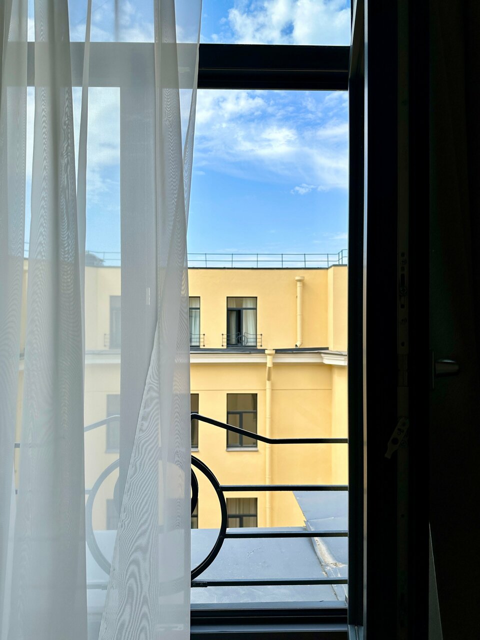 Очень интересная находка рядом с Мариинкой. Совсем новый отель, отличается от многих питерских. Интересное лобби, вежливый персонал. Очень тихий район, в солнечную погоду было кайфово гулять по набережным речушек: окрестности очень живописные: типичный Питер в моём понимании. Удобно — бесплатная парковка по ул. Мастерской, прям рядом с отелем, что в центре большая редкость.