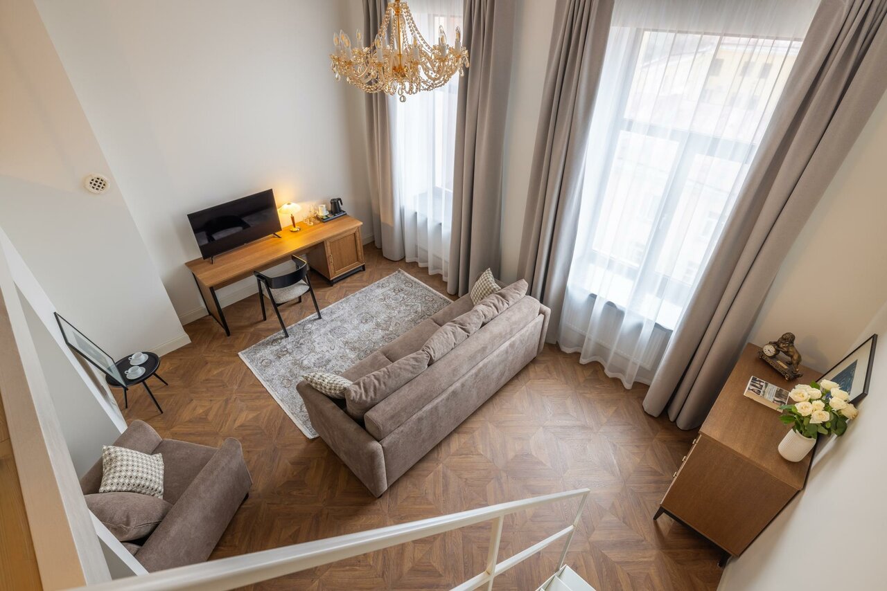 Площадь номера: от 41 до 45 кв. м.Этот необычный двухуровневый номер представляет собой гармоничное сочетание комфорта и стиля, где каждый элемент был тщательно подобран для обеспечения идеального отдыха. Большие окна, наполняющие пространство св...