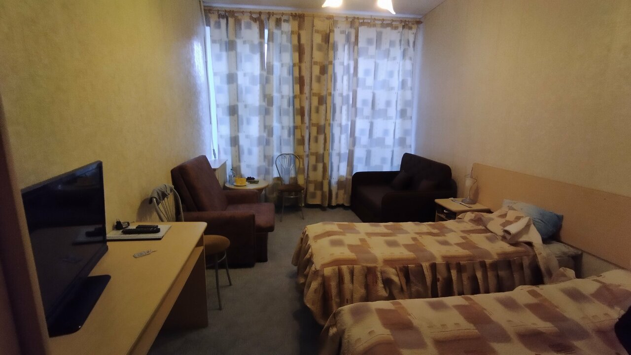 Супер отдых! И погода! Если бы не ремонт за окном и здание в лесах… А ещё сбор 100 — Нигде не сказано. Администратор Лидия умничка! Всё чётко и быстро! Заселила нас раньше времени. И после выселения можно оставить вещи на 12часов! Заселили нас в2ем с ребёнком в 3х местный номер с большой удобной кроватью! На этаже несколько душевых и санузлов! Чисто, свободно, удобно!!!
