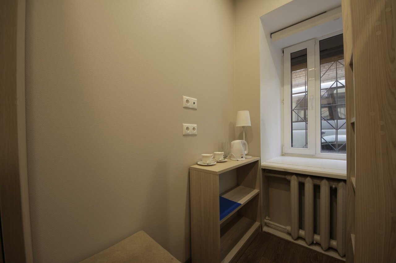 Сама гостиница автономна от главного офиса на Достоевского. Номера супер эконом. Маленькие , но со всеми удобствами. Душ, туалет, телевизор. Кулер с холодной и горячей водой. Чай и сахар в номере есть. Неудобство одно — регистрировпться и на завтрак надо ходить на Достоевского, если завтрак включен, но узнаешь об этом по приезду. На сайте ни слова об этом. Кто потерпит, тем рекомендую.