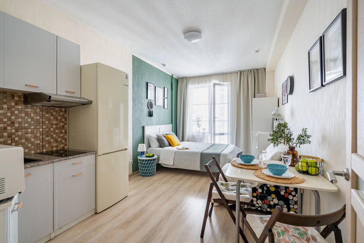 Студия стоит 2500, аналогичный номер в гостинице от 4000. Первые впечатления очень положительные, чистый номер приятная отмосфера и санузел без нариканий. Семьёй можно смело останавливаться.